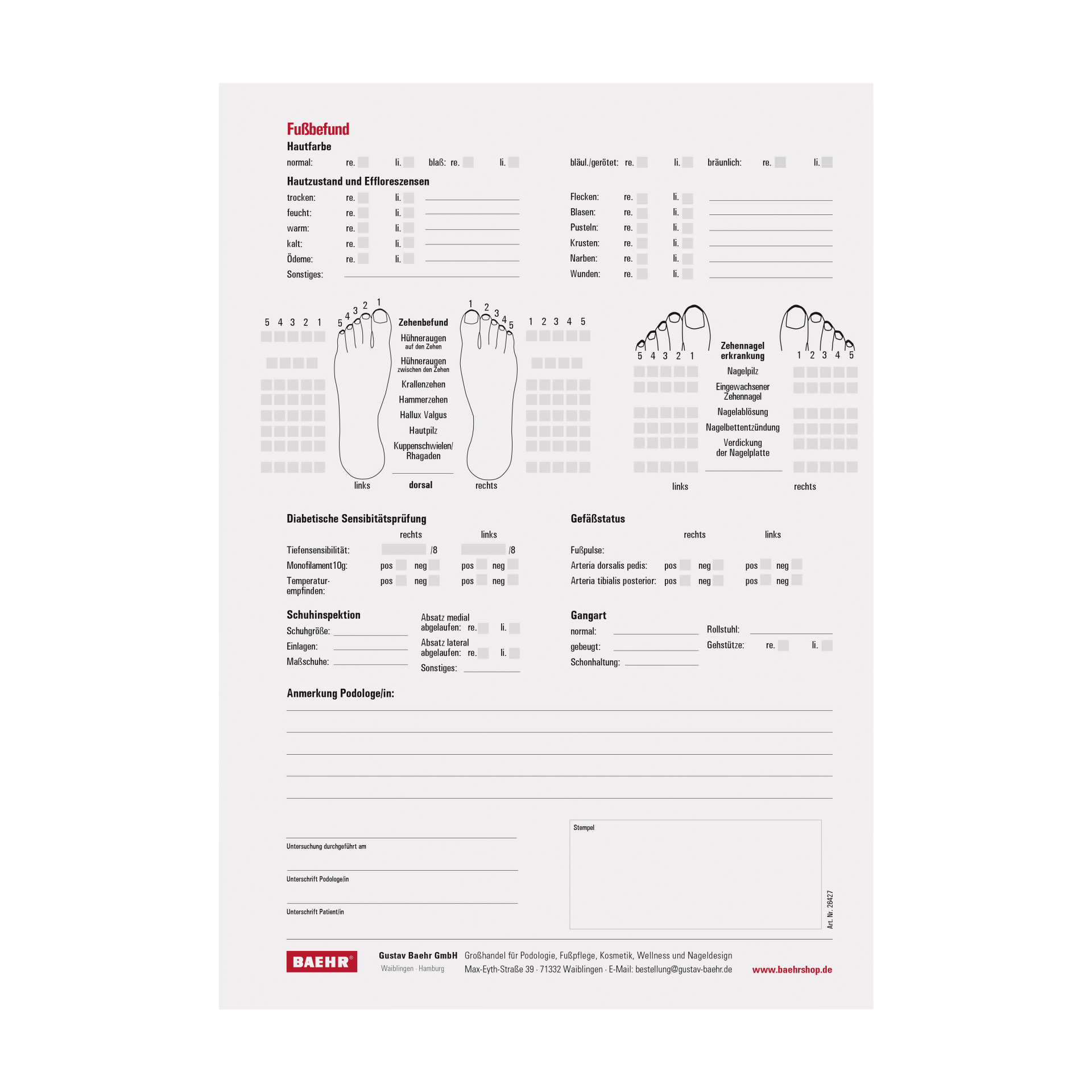 Produktinformationen "BAEHR Anamnese-/Folgeanamnese-Bogen, Podologie Block a 50 Stk"