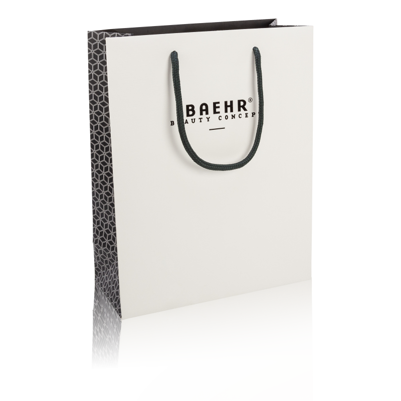 Die Papier-Tragetasche „BAEHR BEAUTY CONCEPT“ ist mehr als nur eine Tragetasche. Sie ist Ausdruck von Stil und Qualität, ein elegantes Accessoire, das Ihre Einkäufe oder Geschenke in Szene setzt. Hergestellt aus hochwertigem geprägtem Strukturpapier, bietet sie eine haptische Erfahrung, die weit über das hinausgeht, was herkömmliche Papiertüten bieten können.