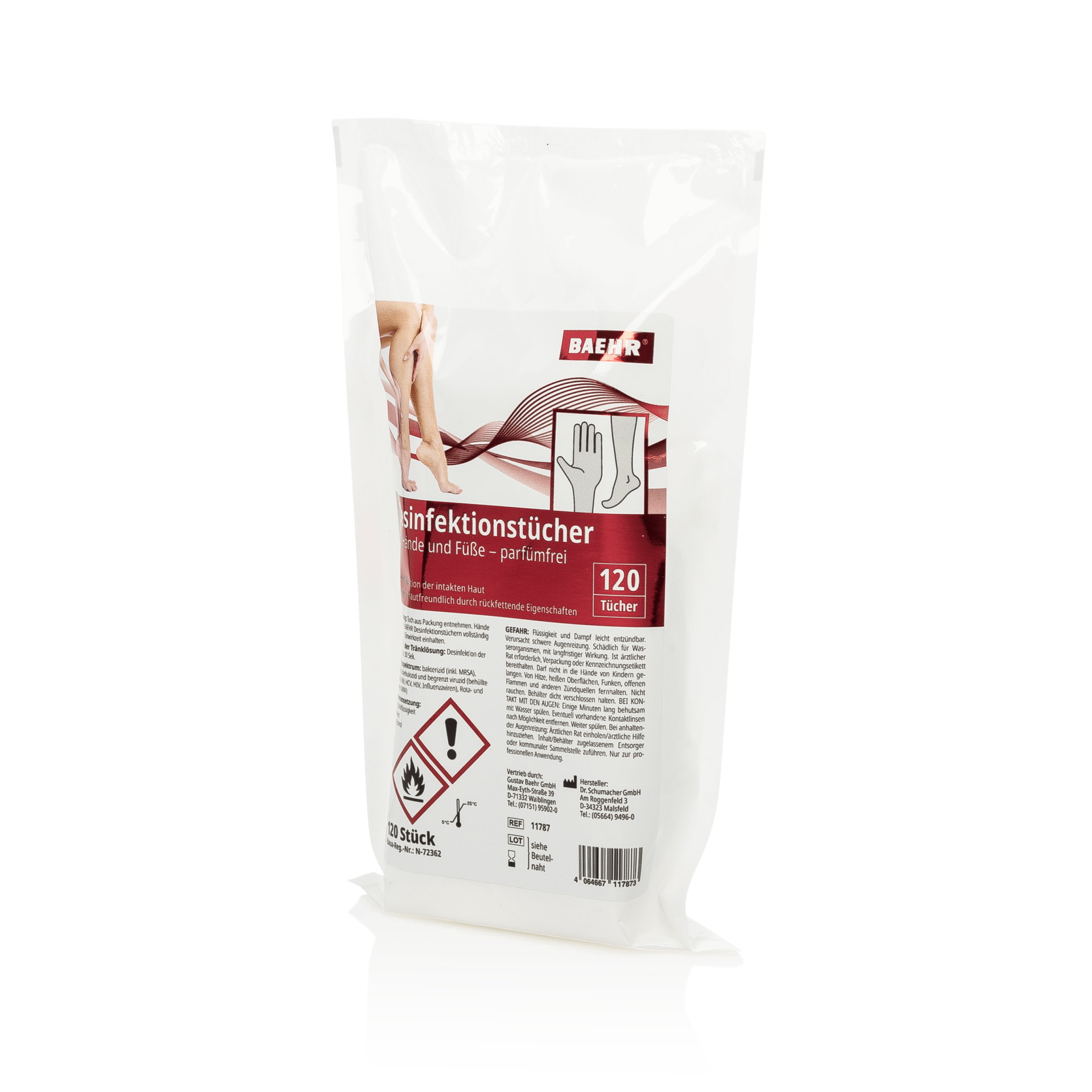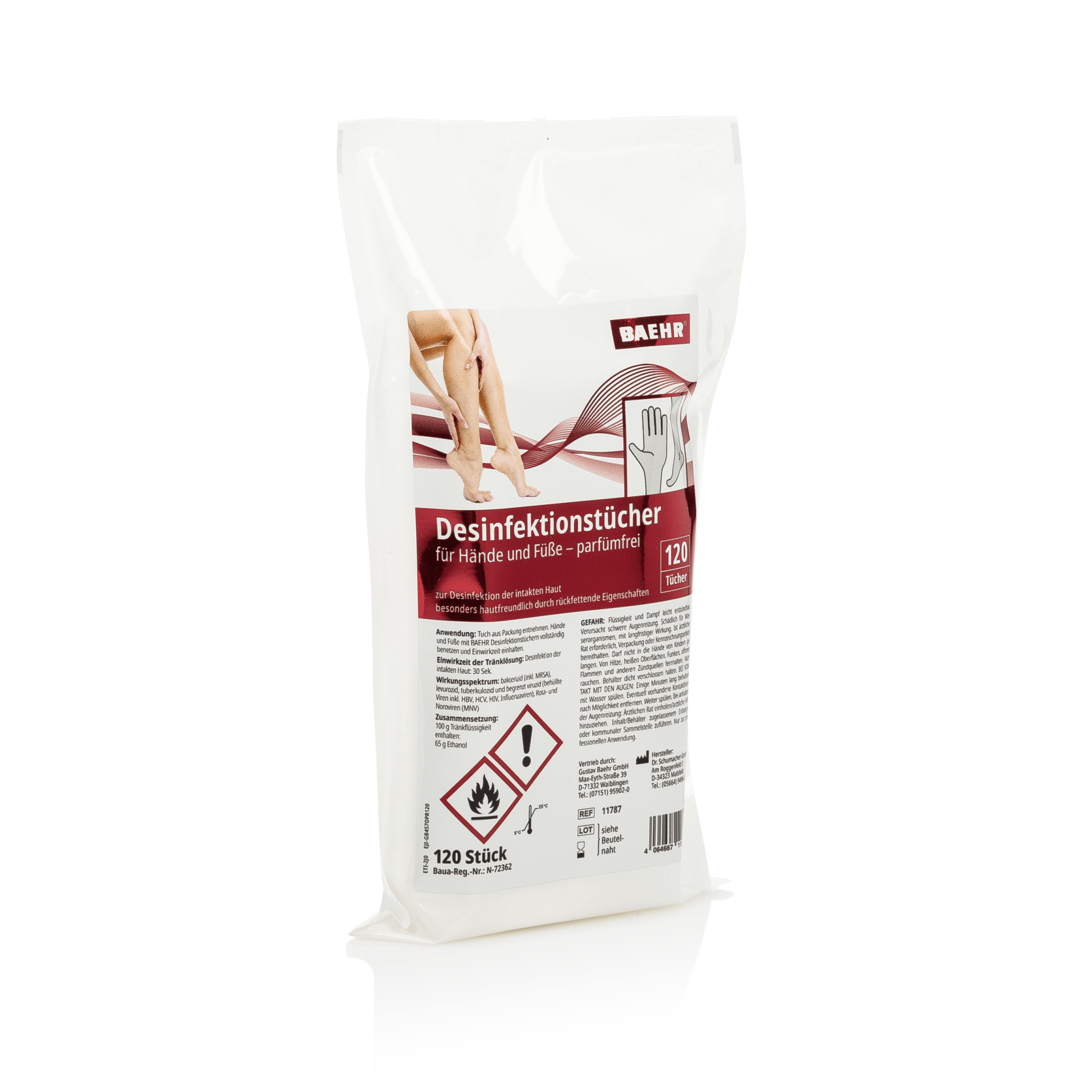Produktinformationen "BAEHR Desinfektionstücher für Hände und Füße, 1 Beutel (120 Stk.)"