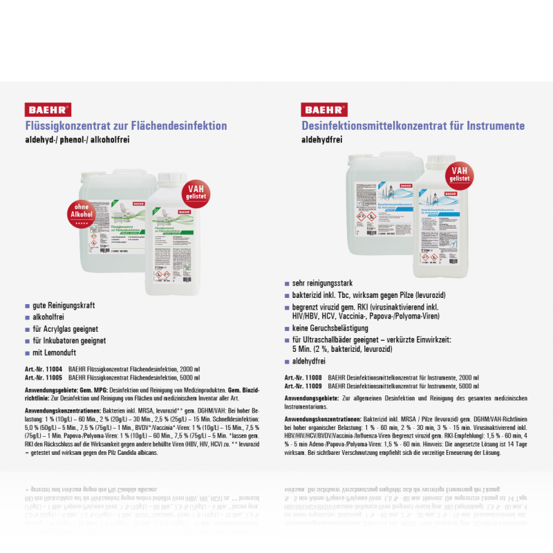 Produktinformationen "BAEHR Dosiertabelle für Desinfektionsmittel"