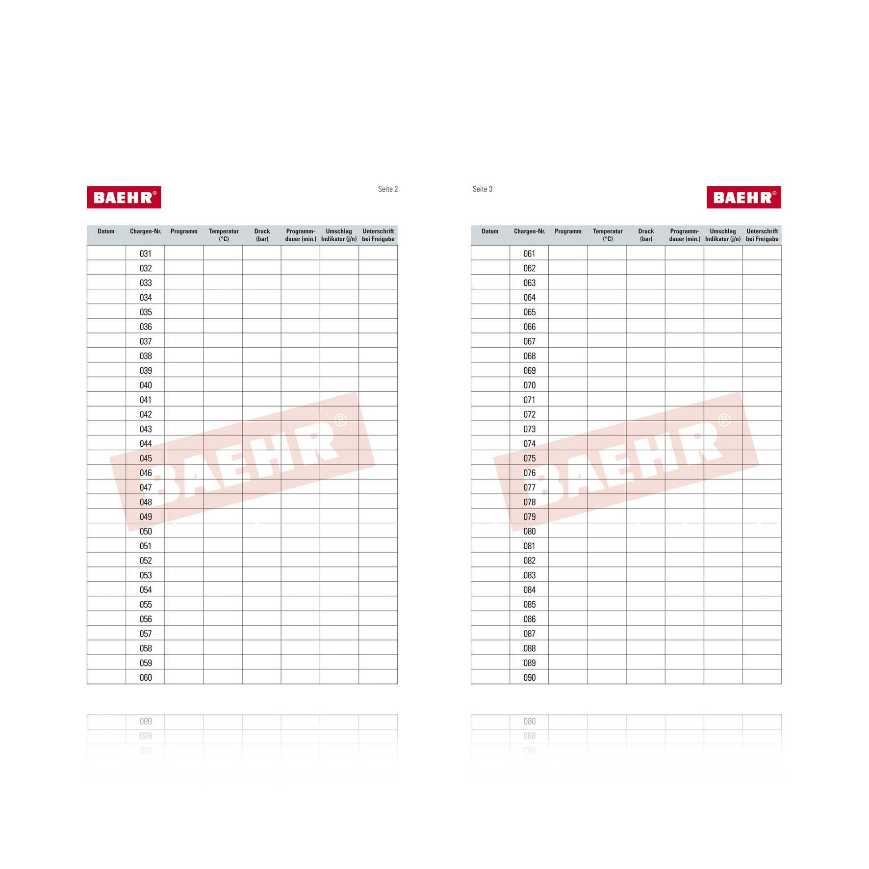 Das BAEHR Sterilisations-Kontrollbuch dient zur Dokumentation der durchgeführten Sterilisationen.