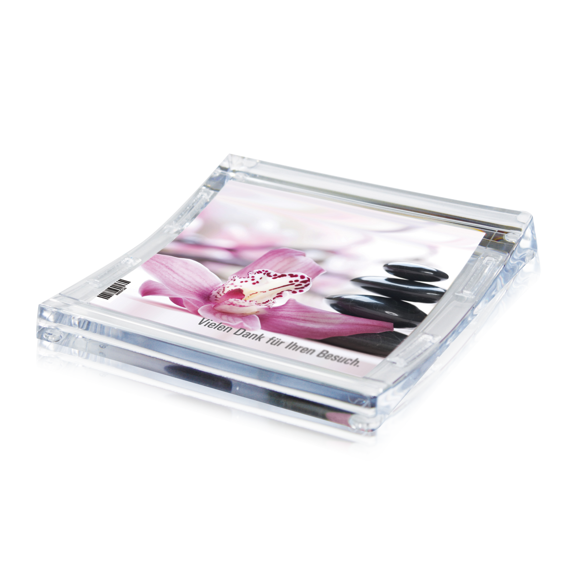 Der Zahlteller aus robustem, transparentem Acryl bietet eine hochwertige und praktische Lösung für Kassenbereiche und Empfangstresen. Dieser Zahlteller kommt mit einem auswechselbaren Einlegeblatt, das zweiseitig bedruckt ist und zwei unterschiedliche Motive bietet. Mit seinen Maßen von B 22 x T 15 cm eignet er sich ideal für vielfältige Anwendungsbereiche.
