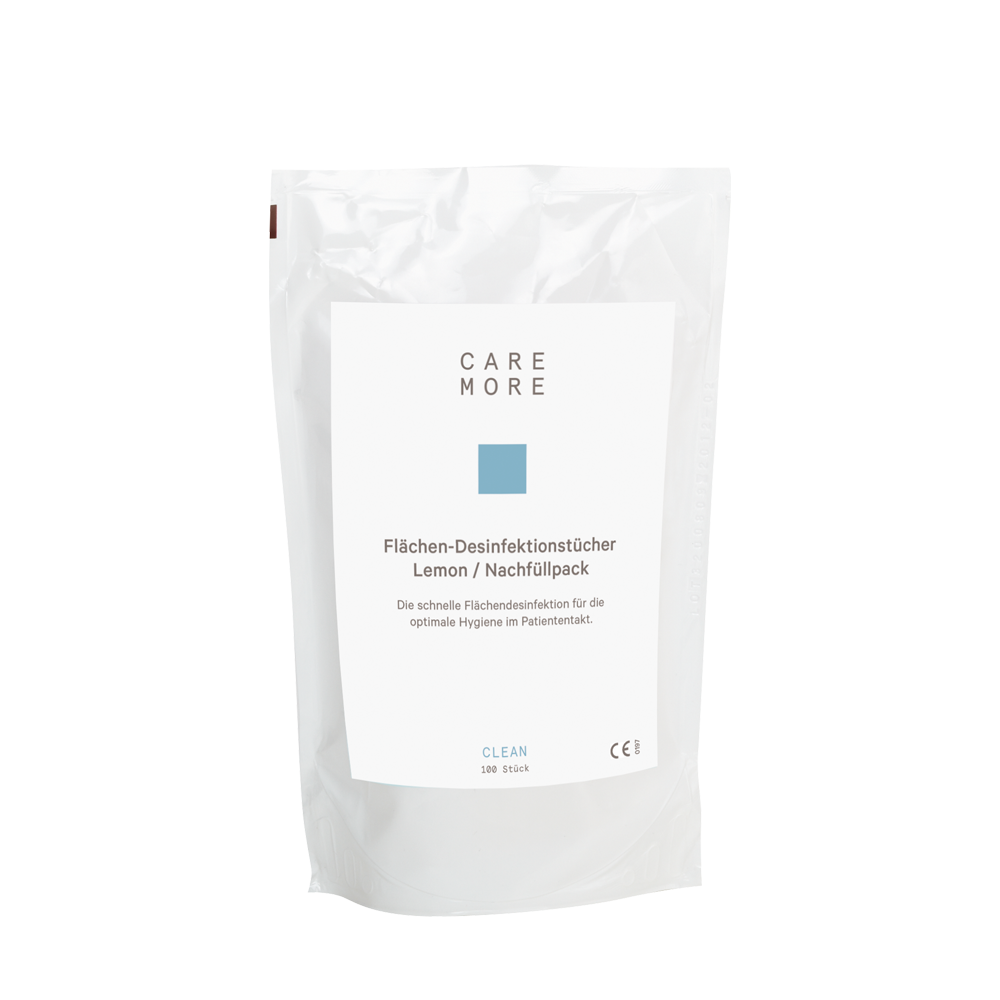 Die CARE MORE Flächen-Desinfektionstücher sind speziell für den medizinischen Bereich konzipiert und bieten eine effektive Lösung zur schnellen und gründlichen Desinfektion. Dieser praktische Nachfüllbeutel gewährleistet, dass Sie stets über ausreichend Desinfektionstücher für Ihre Bedürfnisse verfügen und somit eine durchgängige und optimale Hygiene gewährleisten können.