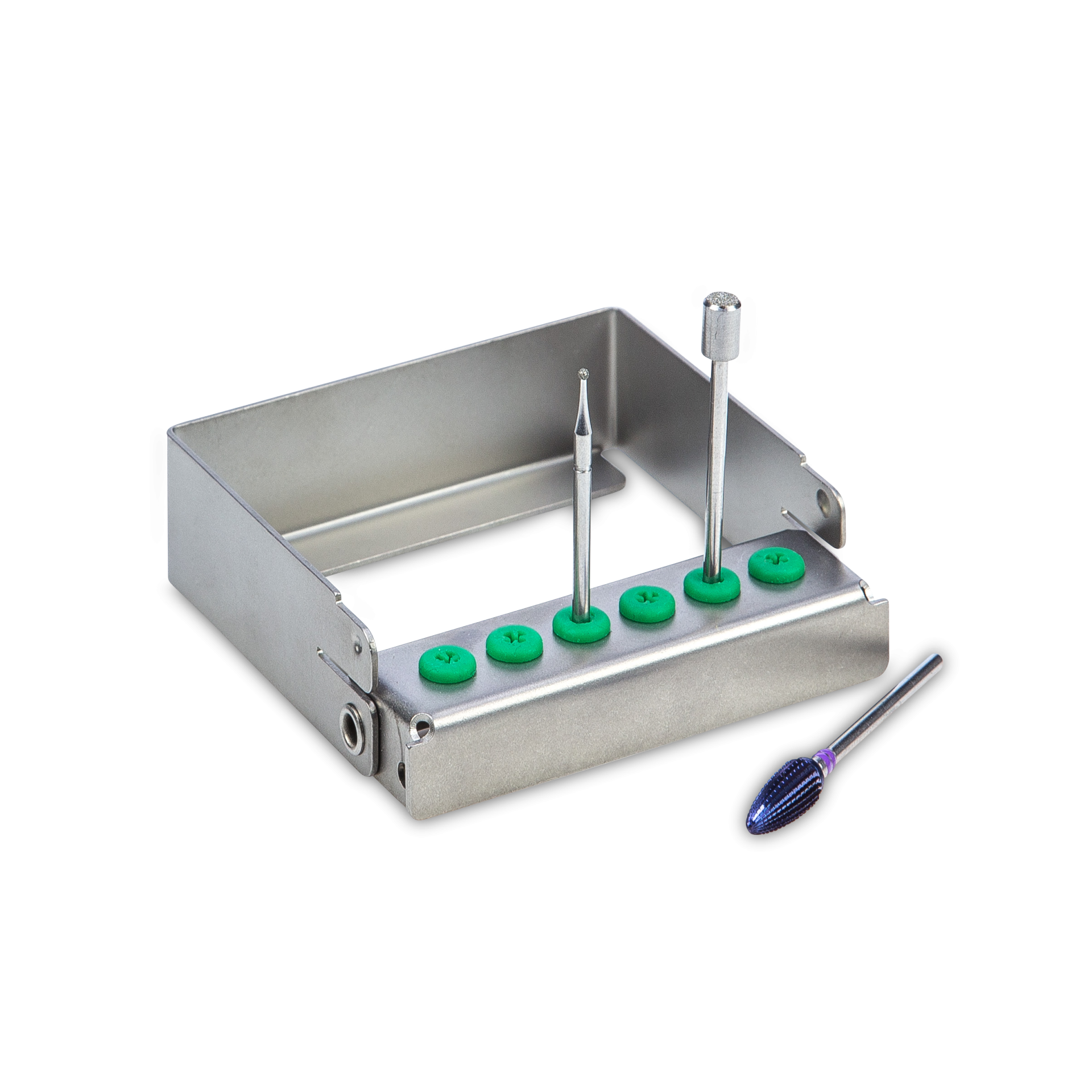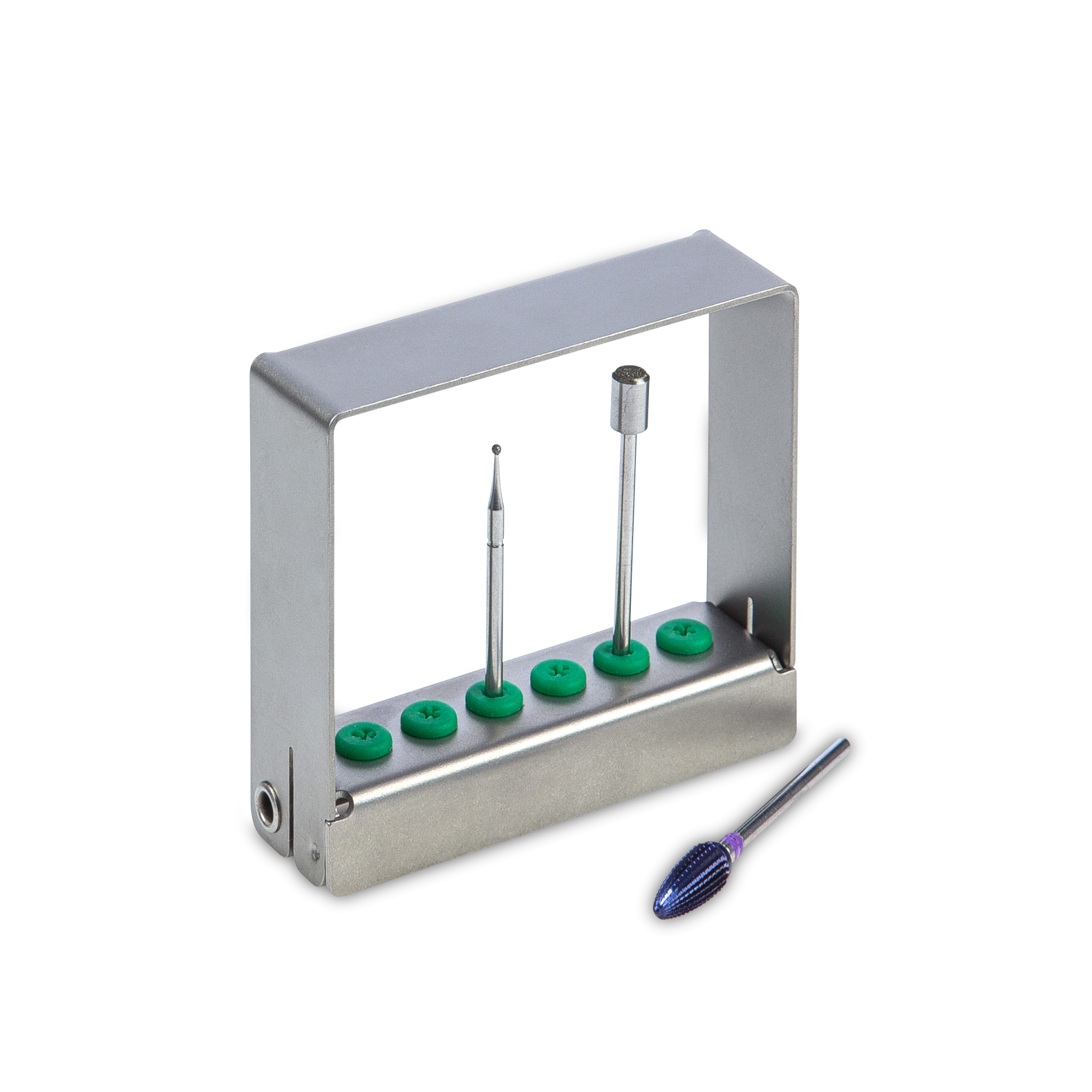 Die Bedeutung von Hygiene und Sauberkeit in der Arbeitsumgebung kann nicht hoch genug eingeschätzt werden, insbesondere wenn es sich um Werkzeuge handelt, die auf empfindlichen Oberflächen wie der menschlichen Haut arbeiten. Zur sicheren Aufbewahrung von rotierenden Instrumenten am Arbeitsplatz, während der Reinigung, bietet unser sterilisierbarer Fräserständer aus Edelstahl im Kompaktformat den perfekten Schutz und ist zudem äußerst hygienisch.