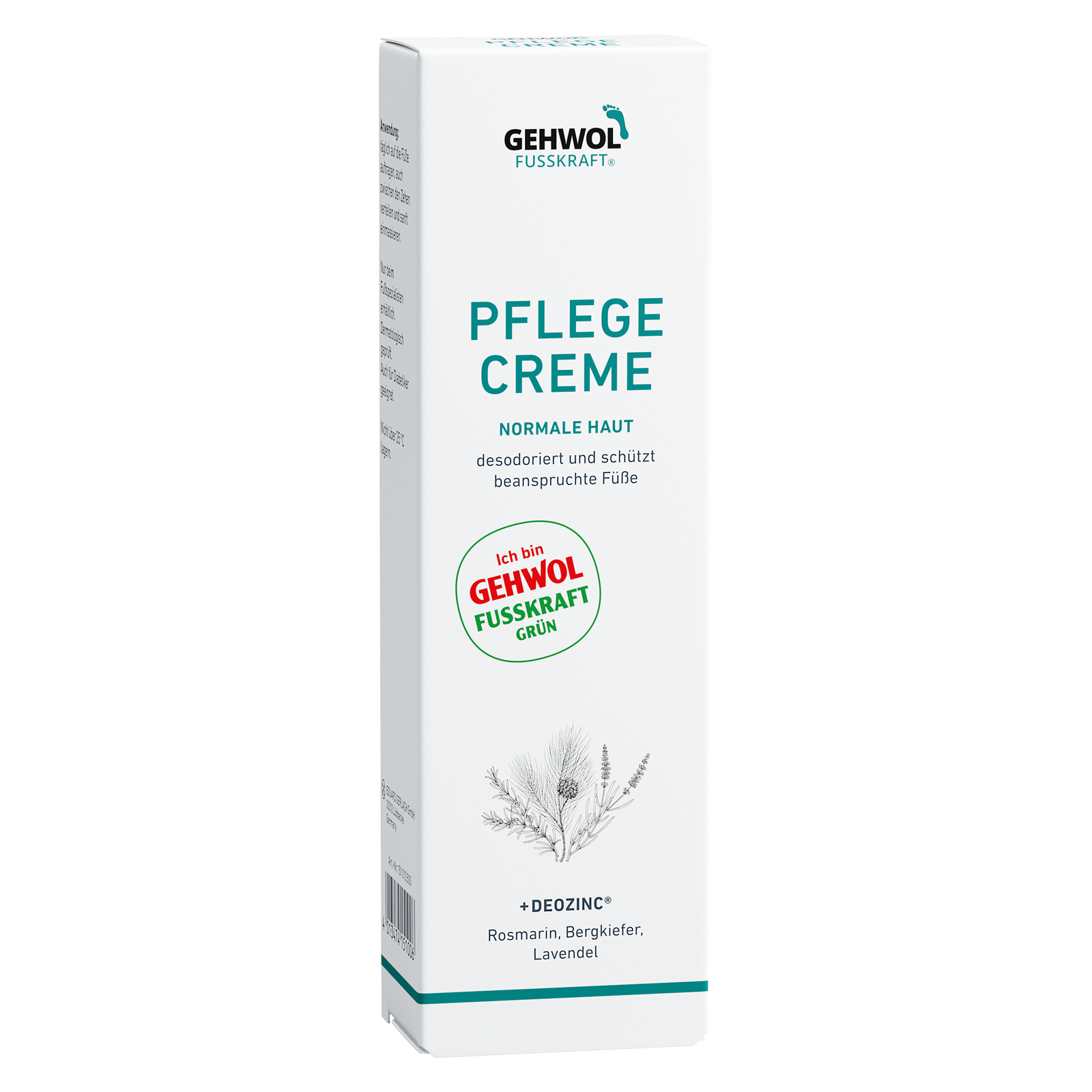 Die PFLEGE CREME mit Deozinc®-Formel reduziert zuverlässig Fußgeruch und sorgt für frische und gepflegte Füße. Sie enthält natürliche ätherische Öle aus Rosmarin, Bergkiefer und Lavendel, die einen wohltuenden Duft verströmen und die Haut beleben.