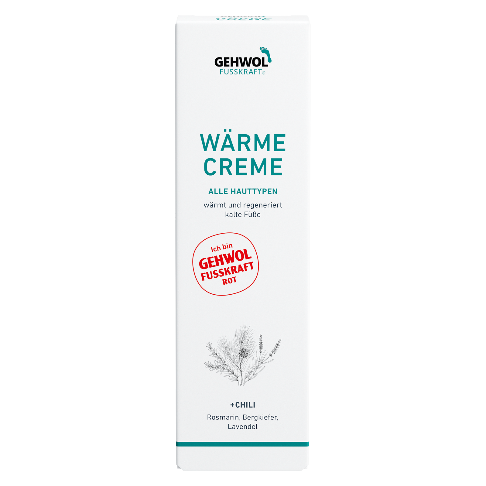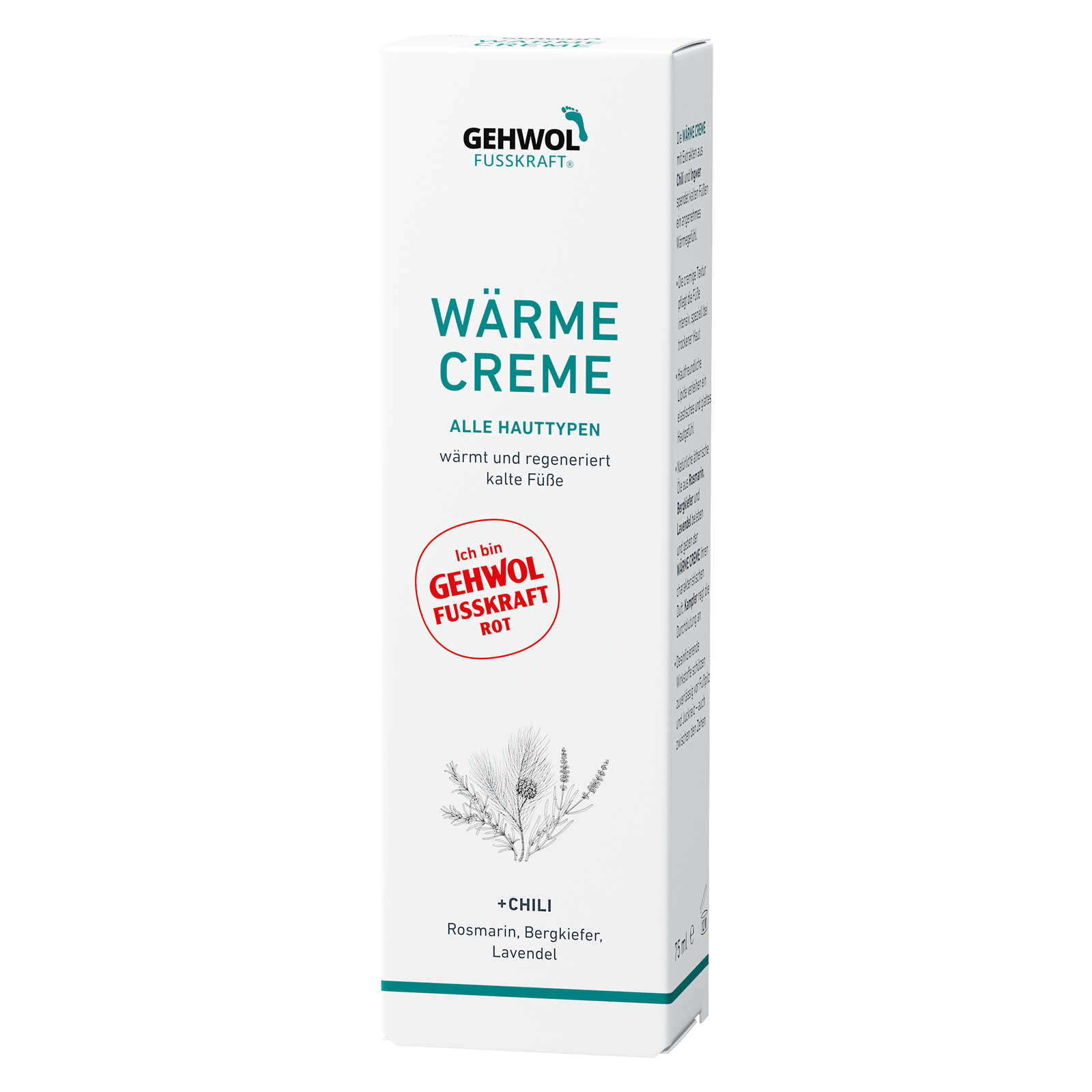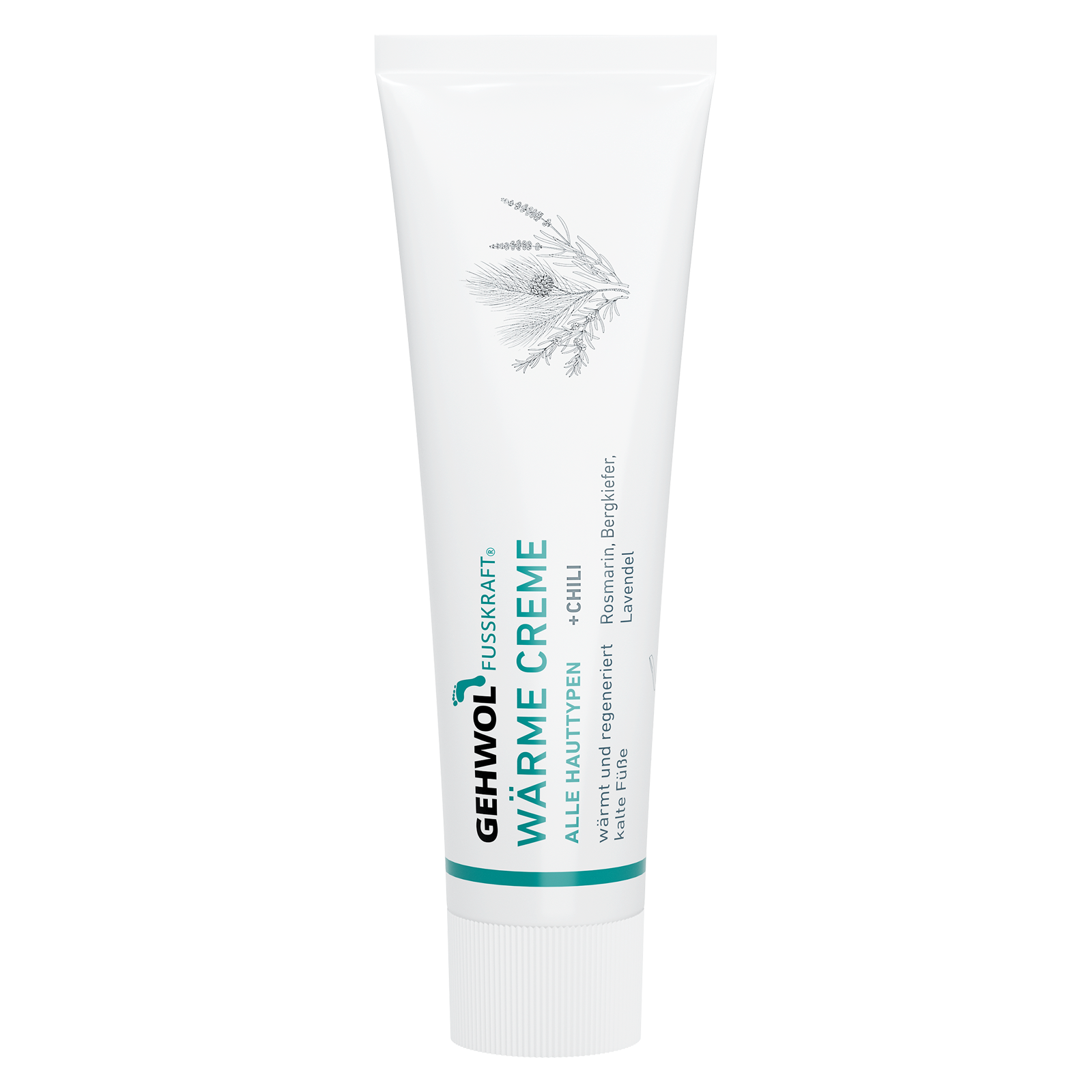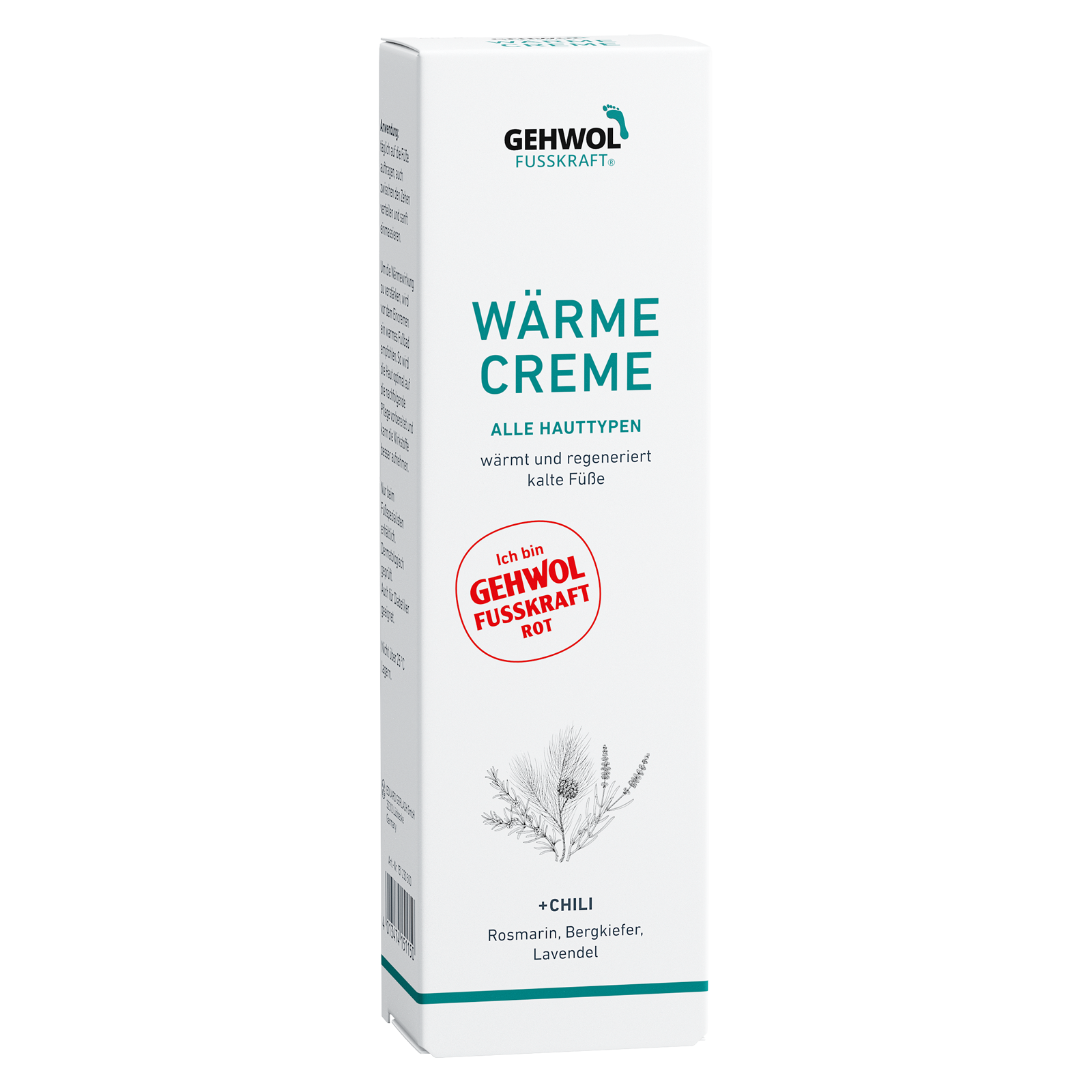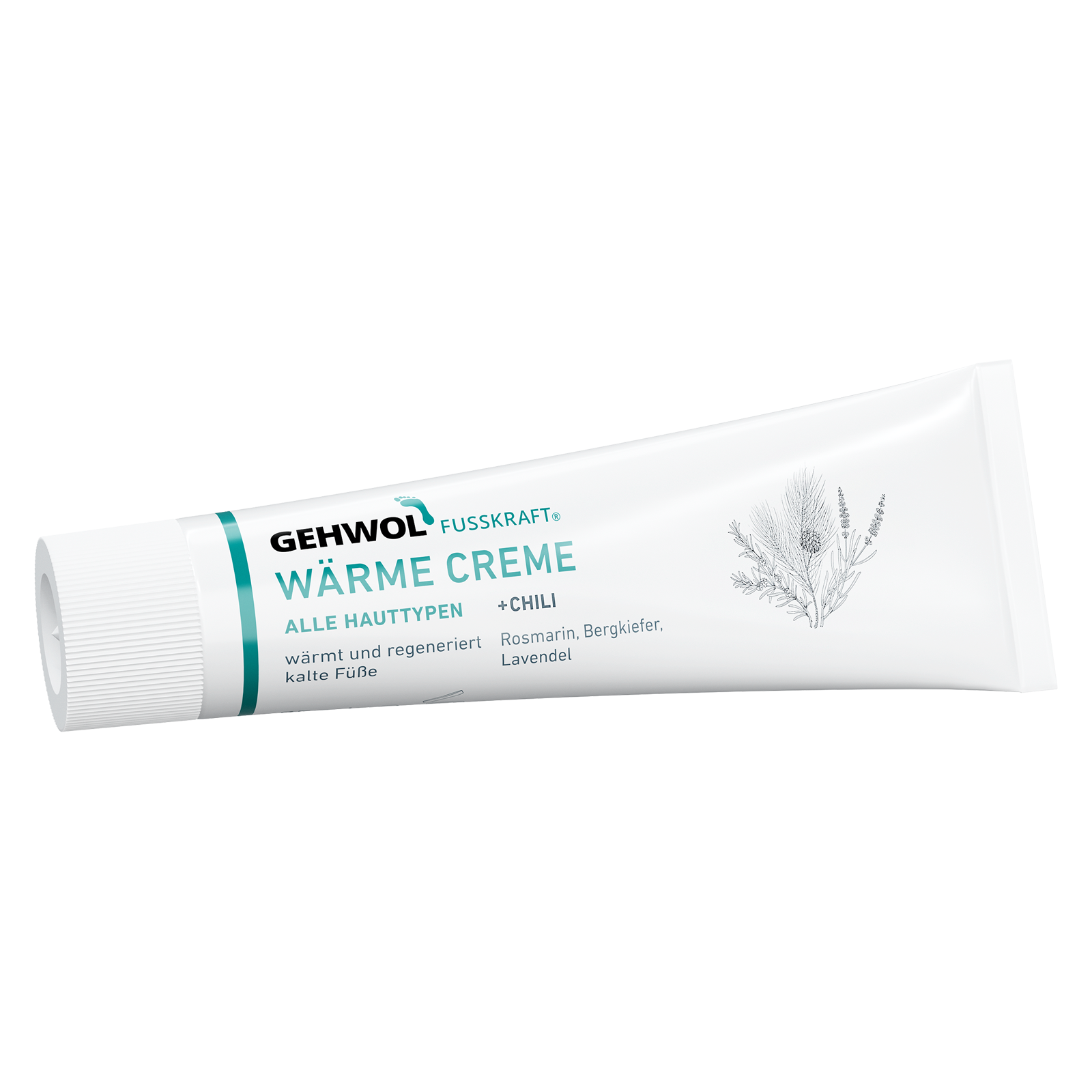 Die GEHWOL FUSSKRAFT WÄRME CREME ist ein wahrer Segen für kalte Füße. Mit Extrakten aus Chili und Ingwer spendet sie ein angenehmes Wärmegefühl und belebt müde Füße. Die cremige Textur pflegt die Füße intensiv, besonders bei trockener, spröder, rissiger und schuppiger Haut. Hautfreundliche Lipide verleihen ein elastisches und glattes Hautgefühl.