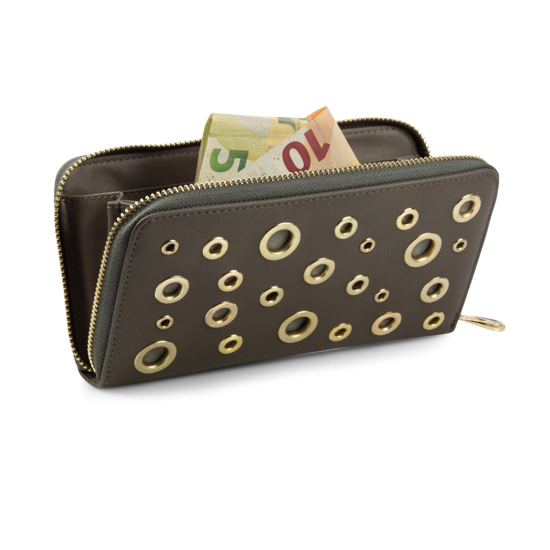 Elegante Geldbörse Vanessa mit Goldfarbenen Ring-Applikationen