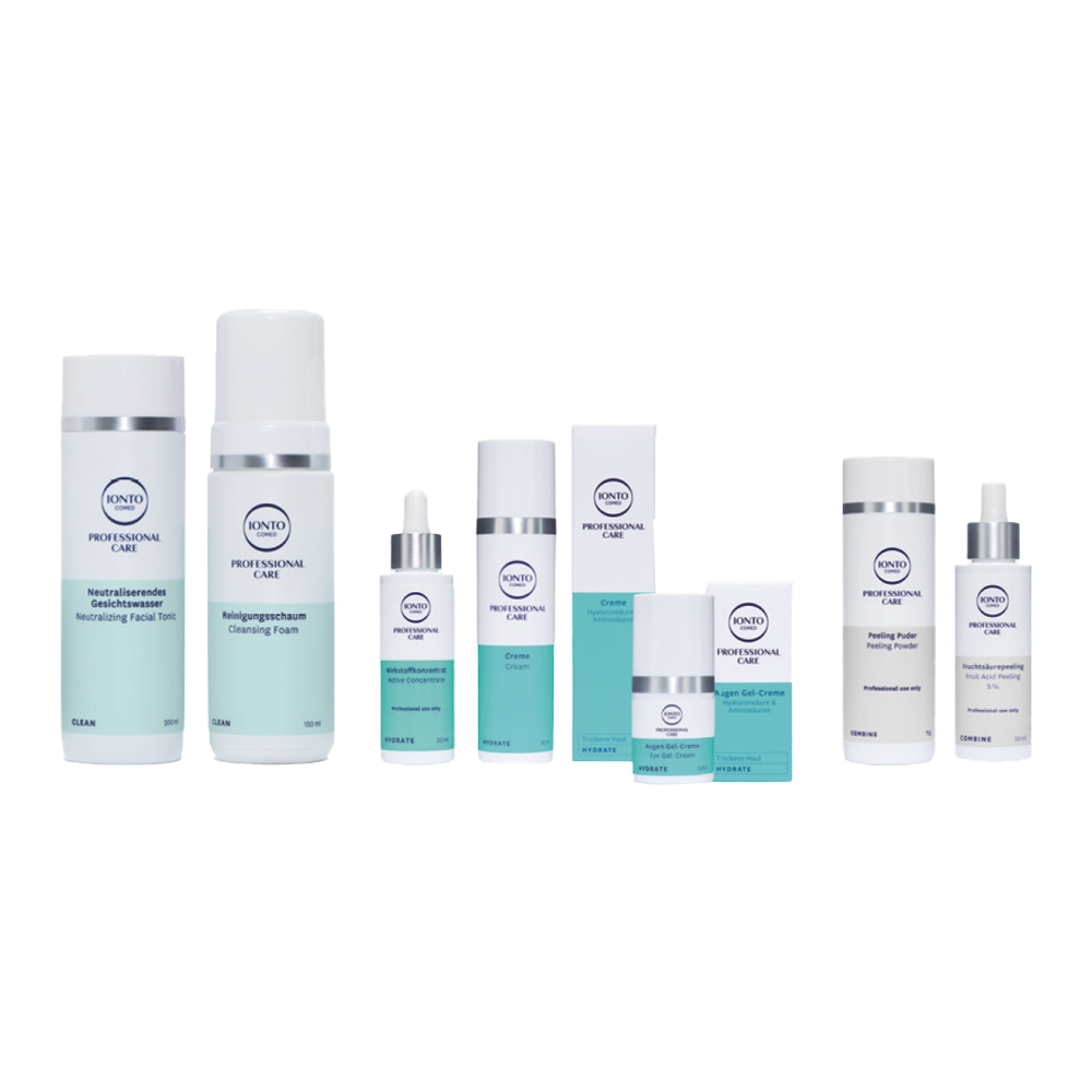 IONTO-COMED Professional Care MINI-TEST-SET in Verkaufsgrößen zum Ausprobieren. Verkaufsgrößen für Sie zum Ausprobieren. In diesem Mini-Test-Set haben wir für Sie eine kleine Auswahl der häufigsten Pflegeprodukte zu einem attraktiven Kennenlern-Preis zusammengestellt. Die Wirkstoffe sind innovativ und bereichern unsere professionelle Hautpflegeserie in optimalen Konzentrationen.