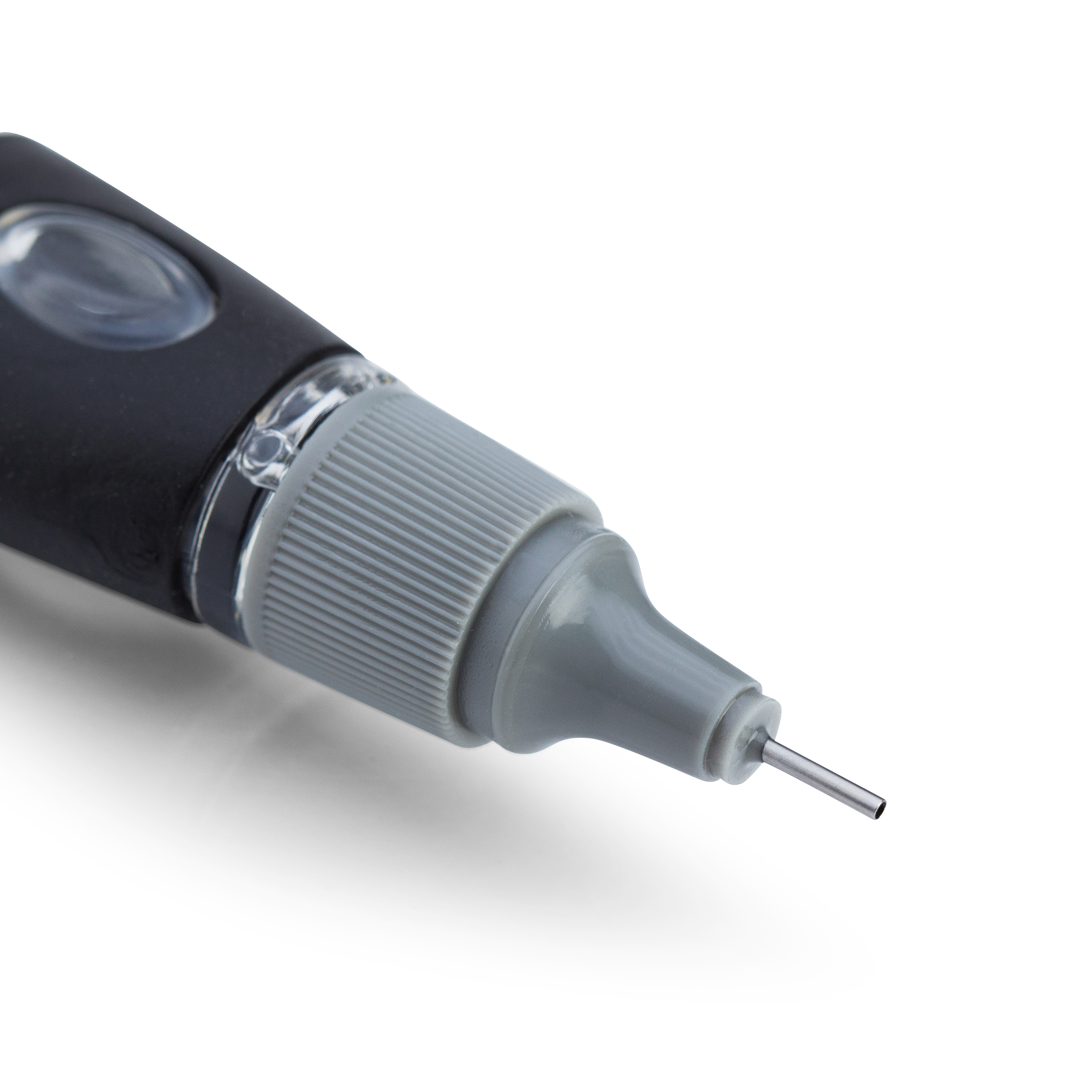 Der Lubra metallic Ölstift bietet eine spezialisierte Pflege für Ihre medizinischen Instrumente. Mit einer Kapazität von 12,2 ml, ist dieses Hochleistungsöl ideal für die Anwendung nach der Sterilisation. Ein einziger Tropfen reicht aus, um Ihre Instrumente effektiv vor Korrosion und Oxidation zu schützen, und erhält deren Funktionalität und Langlebigkeit.