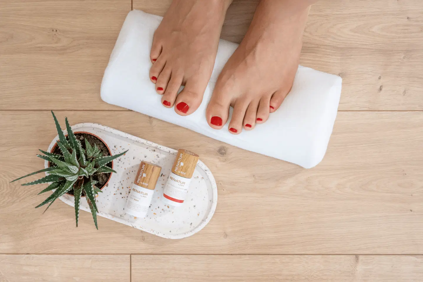 Der RENATUR by RUCK UV-Pedicure Polish wird in einem einfachen 2-Phasen-Lackiersystem aufgetragen. Es ist lediglich der Base und eine UV-Pedicure Polish Farbe erforderlich, ein Überlack ist nicht notwendig. Dies macht die Anwendung nicht nur einfacher, sondern auch zeitsparender. Zudem enthalten die Lacke keine Dispersionsschicht, was die Entfernung des Lacks erleichtert.