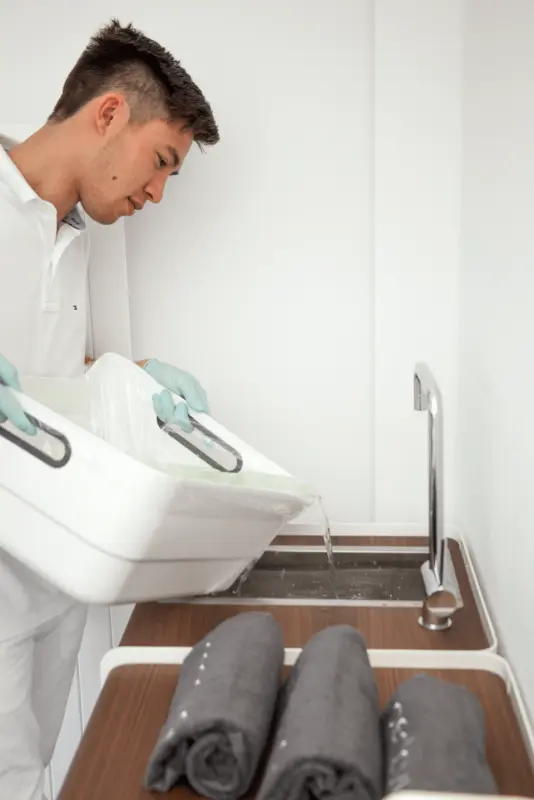 Stellen Sie sich den Komfort vor, den Ihre Kunden fühlen, wenn sie ihre Füße in die perfekt geformte Fußwanne von RUCK® tauchen. Dies ist nicht nur ein einfaches Fußbad. Es ist ein Versprechen für Qualität und ein Zeichen dafür, dass Sie sich um das Wohlgefühl und die Zufriedenheit Ihrer Kunden kümmern. Mit dem RUCK® Fußwannenwagen ROOM POOL wird jede Pediküre zu einem luxuriösen Erlebnis.