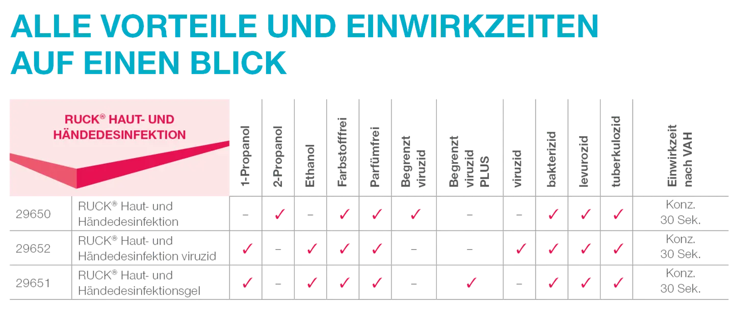 Die RUCK® Haut- und Händedesinfektion zeichnet sich durch folgende Merkmale aus: