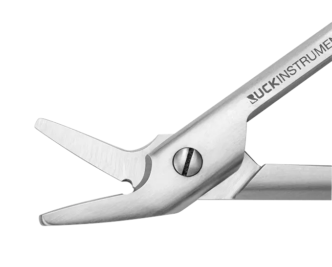 Die RUCK INSTRUMENTE Kronenschere ist speziell entwickelt worden, um die GOLDSTADT professional Classic und Kunststoffspangen effektiv zu schneiden. Mit ihrer schrägen Schneide, ausgestattet mit einer leichten Zahnung, und einer Einkerbung am unteren Ende, ist sie auch ideal zum Kürzen von Draht. Ein unverzichtbares Instrument für präzise und saubere Schnitte.