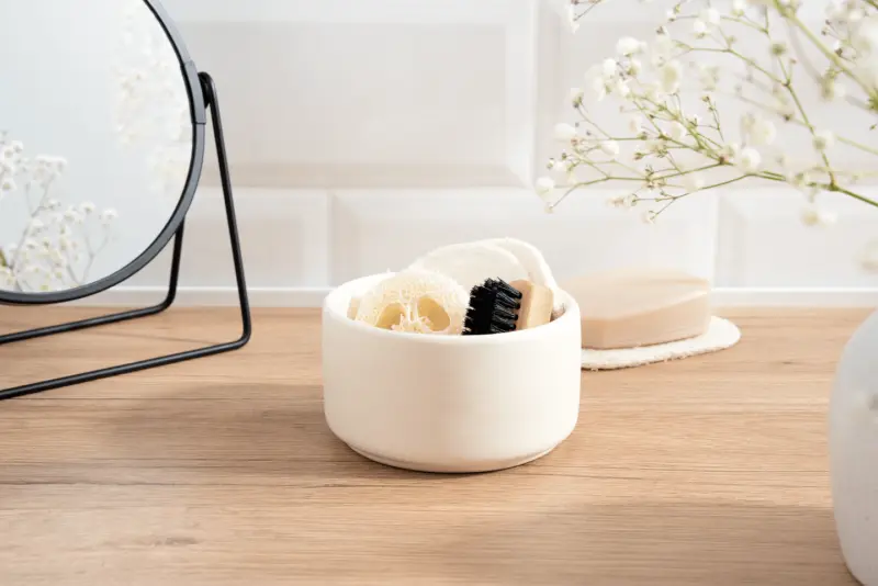 Die handgefertigte RUCK Keramik Aufbewahrungsdose kombiniert Design und Funktionalität in einem. In einem ansprechenden offwhite-Ton, fügt sie sich nahtlos in jedes Badezimmerdesign ein und dient perfekt zur Aufbewahrung der wiederverwendbaren RUCK Abschminkpads im Wäschenetz. Hergestellt in Deutschland, verspricht diese Dose dank der hohen Brenntemperaturen in mehreren Brennvorgängen nicht nur Schönheit, sondern auch Langlebigkeit und Stabilität. Sie harmoniert zudem ideal mit den handgefertigten RUCK Keramik-Seifenschalen.Eigenschaften des Produkts: