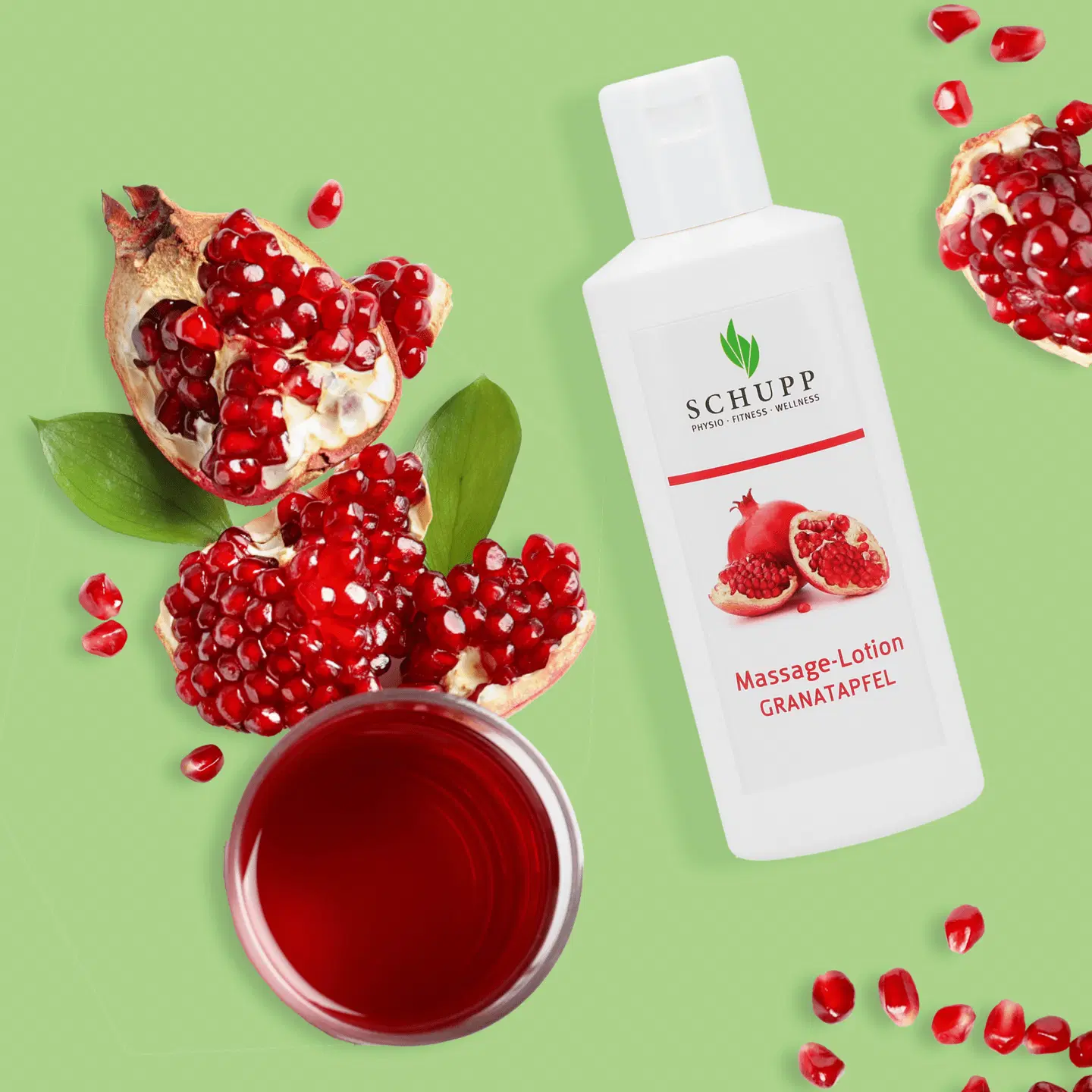 Die SCHUPP Massage-Lotion Granatapfel ist mehr als nur ein Produkt. Sie ist ein Versprechen an Sie selbst, sich die Zeit zu nehmen, sich zu pflegen und zu verwöhnen. Sie ist die Einladung, einen Moment der Ruhe zu genießen und sich mit der Kraft der Natur zu umgeben. Jede Anwendung ist eine kleine Auszeit, ein Moment der Entspannung und Regeneration. Genießen Sie das Gefühl, Ihre Haut mit dem Besten zu pflegen, was die Natur zu bieten hat.