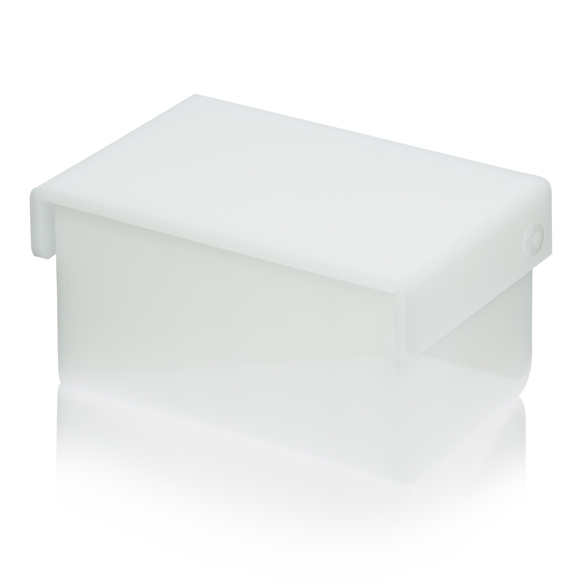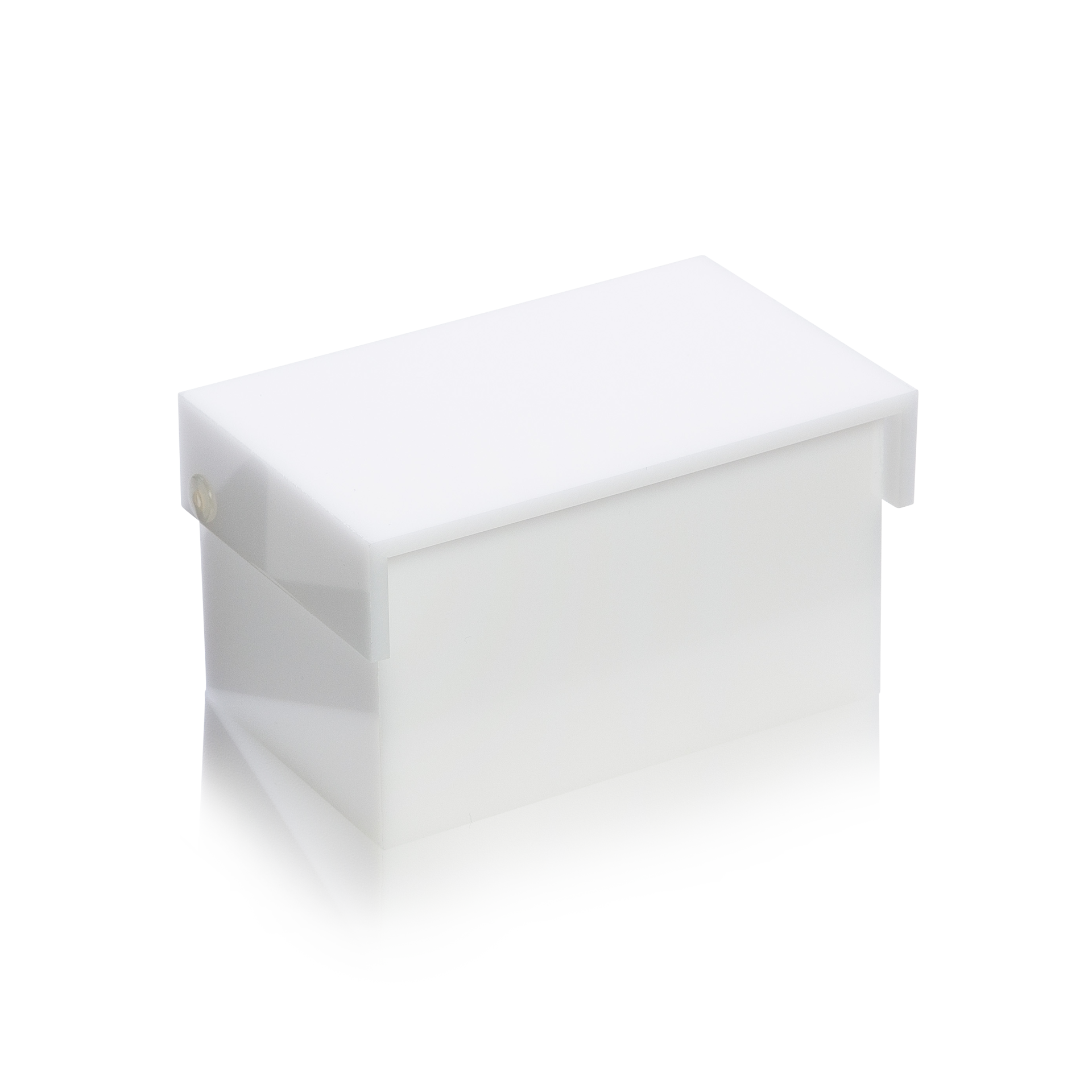 Behälter klein, weiß, aus strapazierfähigem Acryl, mit einteilbaren Trennfächern.