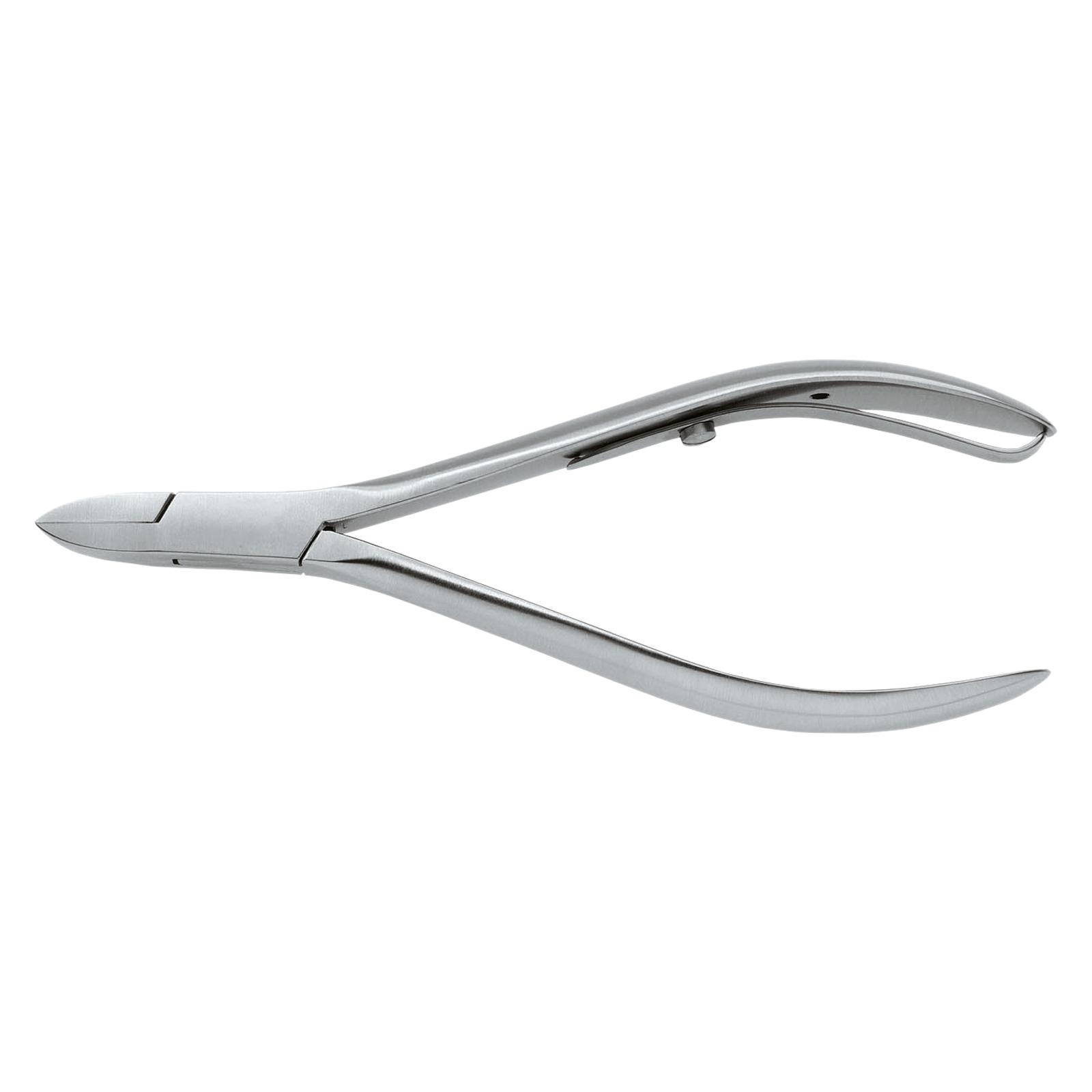 Die AESCULAP - Eckenzange HF 475 ist ein spezielles chirurgisches Instrument, das hauptsächlich dazu dient, schwierige und hartnäckige Nägel zu entfernen. Sie ist aus hochwertigem Edelstahl gefertigt, was sie rostbeständig und langlebig macht. Darüber hinaus hat die Zange einen speziellen Griff, der für eine komfortable und sichere Handhabung sorgt, und verfügt über eine spezielle Form, die eine präzise und effektive Nagelentfernung ermöglicht.