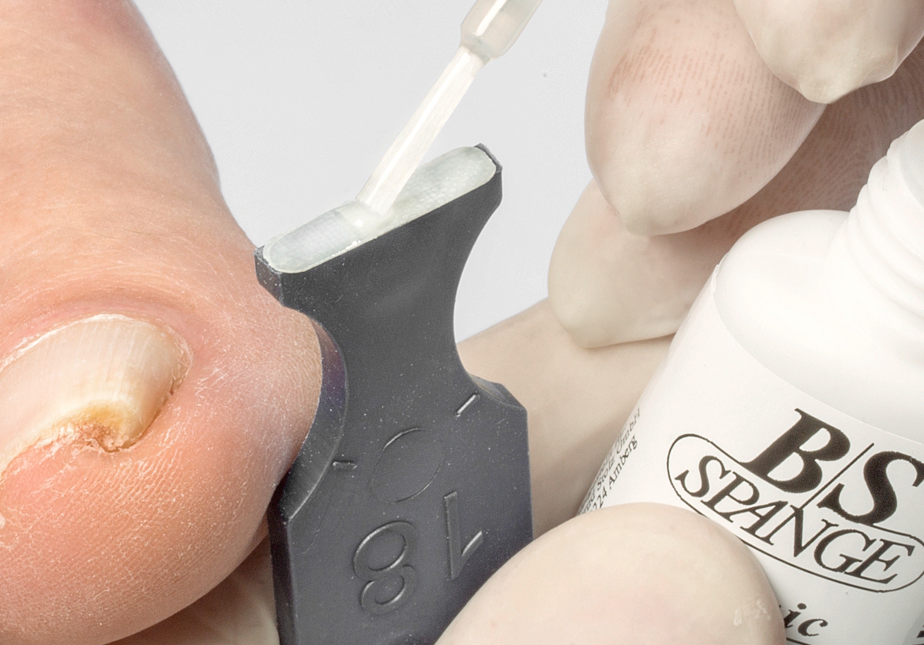Die B/S Spange Magnet+ ist ein dünnes Kunststoffplättchen, mit dem eine schnelle und wirkungsvolle Nagelkorrektur möglich ist. Sie ist ab sofort mit einem Magnetpoint ausgestattet, der mittig platziert ist. Zusätzlich befindet sich auf jedem Applikator ein Magnet, mit dessen Hilfe die Anwendung und Platzierung der Spange erheblich vereinfacht wird. Sie findet Anwendung zum Beispiel bei eingewachsenen Nägeln mit wundem Nagelfalz, empfindlichen seitlichen Nagelrändern, Hühneraugen im Nagelfalz und eitrig eingewachsenen Nägeln. Die B/S-Spange ist wasserresistent und optisch unauffällig – Nagel und Spange können farbig lackiert werden.