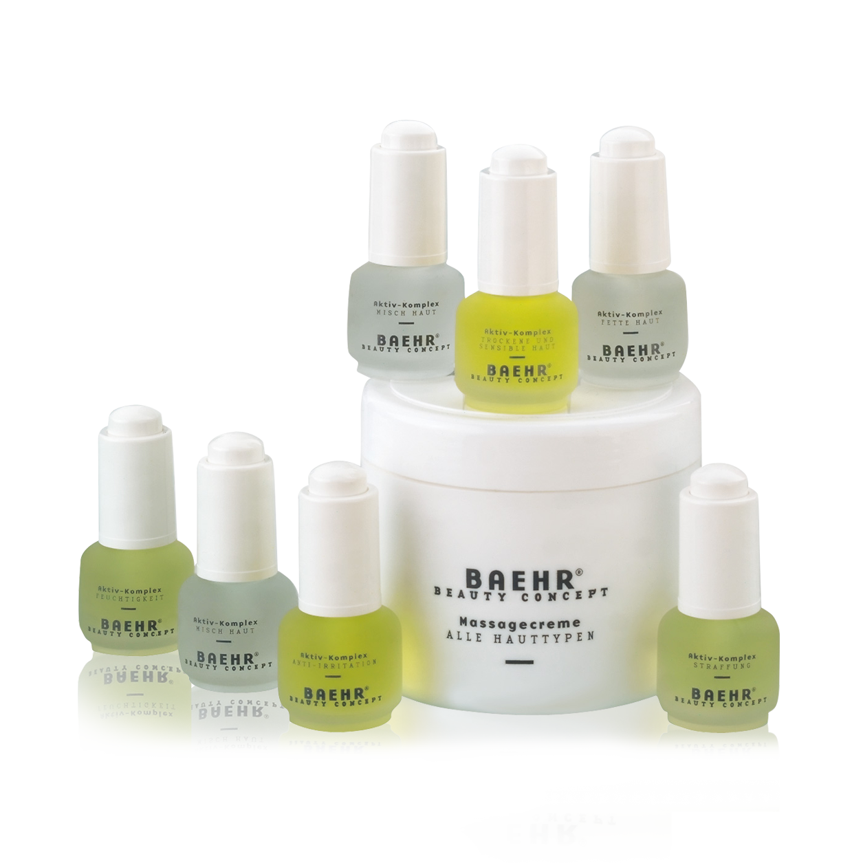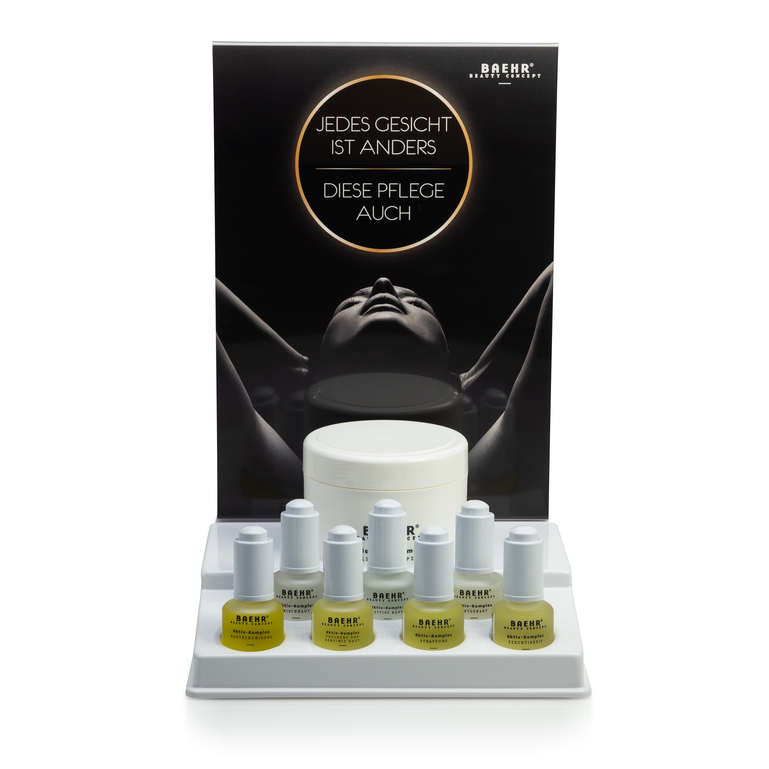 Die enthaltenen Aktiv-Komplexe sind eine Mischung aus Pflanzenextrakten und ätherischen Ölen, die in Verbindung mit der Massagecreme gezielt wichtige Funktionen der Haut aktivieren. Das Set eignet sich ideal für die individuelle Anpassung an die Hautbedürfnisse Ihrer Kunden.