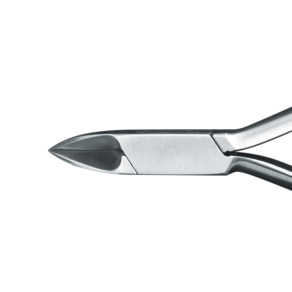 Die Tadelia® Professional Eckenzange mit glattem Griff (Flammenspitz) und einer super schlanken geraden Schneide ist ein hochwertiges Instrument, das speziell für die Fußpflege und podologische Behandlung entwickelt wurde.