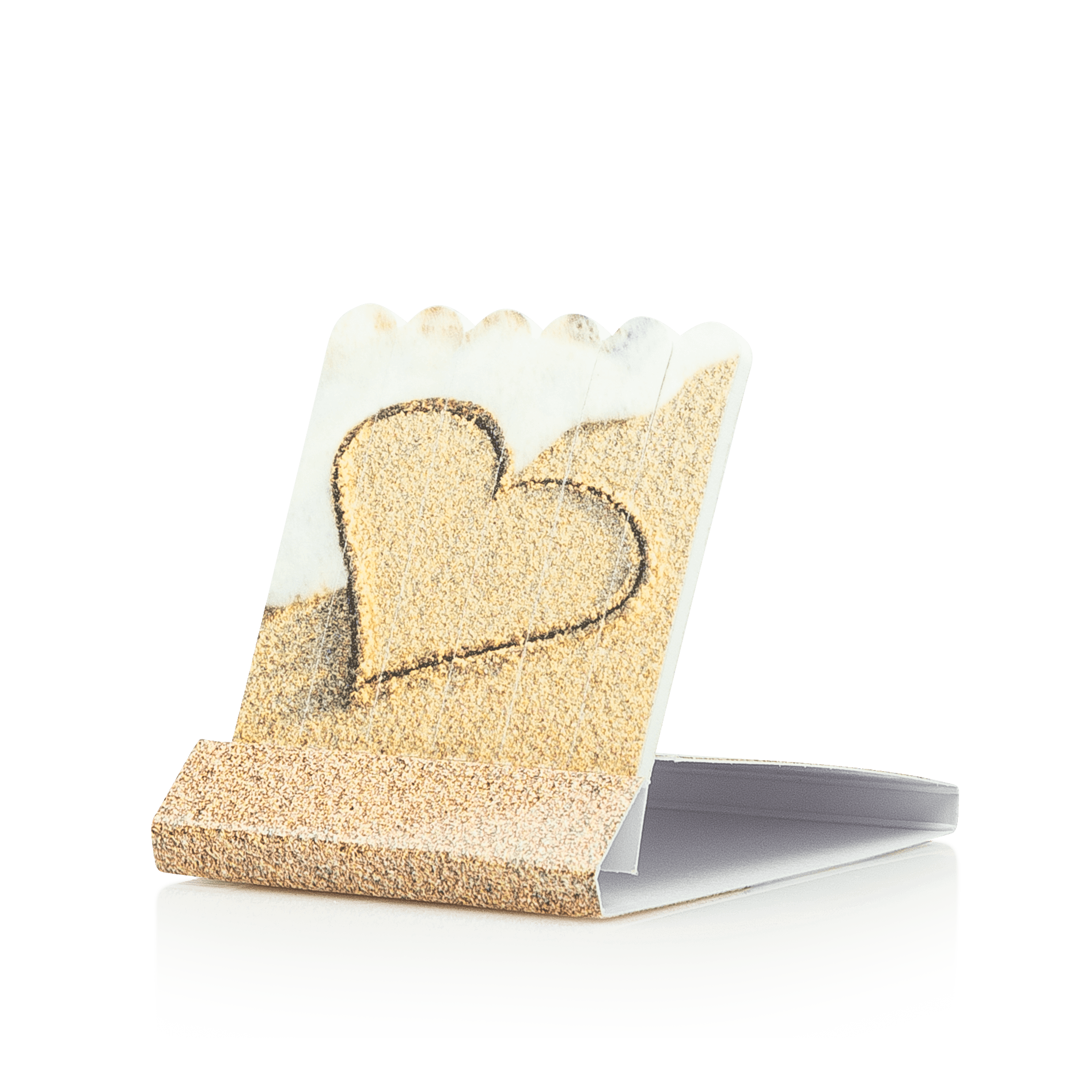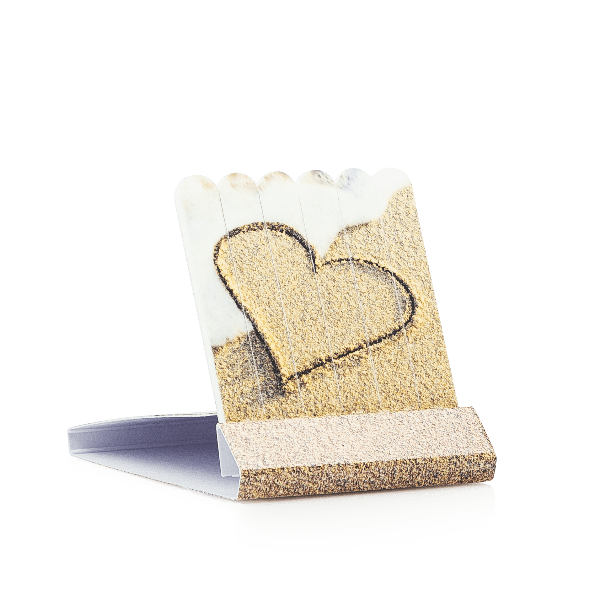 Dieses Mini-Nagelfeilenheftchen von Herzen ist ein praktisches Accessoire, das in jede Handtasche passt und gleichzeitig ein echter Hingucker ist. Es bietet die ideale Lösung für die Nagelpflege unterwegs.