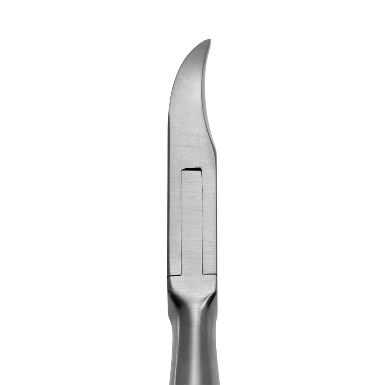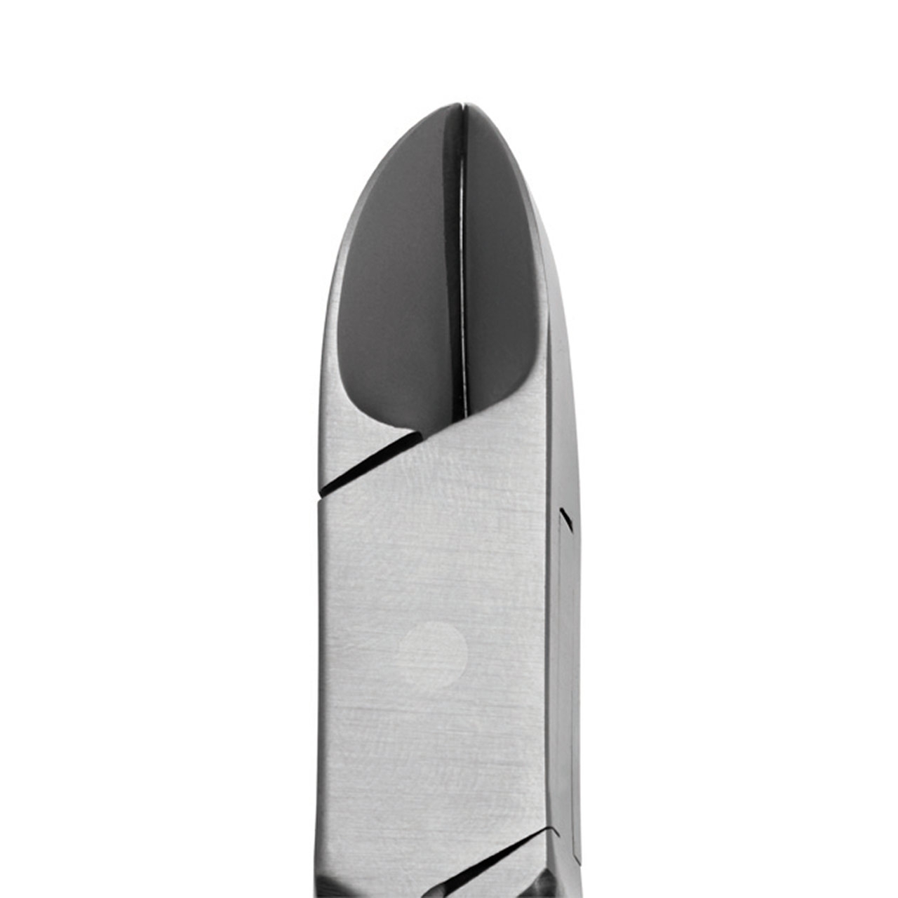 Die Nagelzange ECO matt zeichnet sich durch eine kompakte Form und eine gewölbte Schneide aus. Sie ist ideal zur Bearbeitung des freien Nagelrandes und eignet sich hervorragend bei kräftigen Nägeln. Die gewölbte Schneide misst etwa 20 mm und die Gesamtlänge des Instruments beträgt etwa 14 cm. Die Ersatzfeder ist unter der Art.Nr. 71330595 erhältlich.