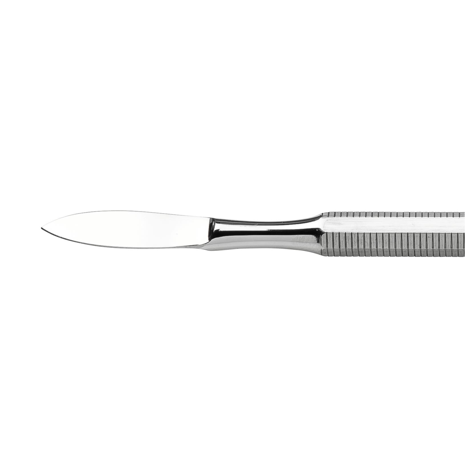 Das BAEHR PODOLINE Nagelfalzmesser mit Schneide ist speziell für die professionelle Fußpflege entwickelt worden. Es verfügt über eine scharfe Schneide, die präzises und effektives Arbeiten ermöglicht. Mit einer Gesamtlänge von 13,5 cm liegt das Instrument gut in der Hand und ermöglicht ein sicheres Arbeiten. Das Nagelfalzmesser ist aus hochwertigem Edelstahl gefertigt, was es besonders langlebig und rostfrei macht.