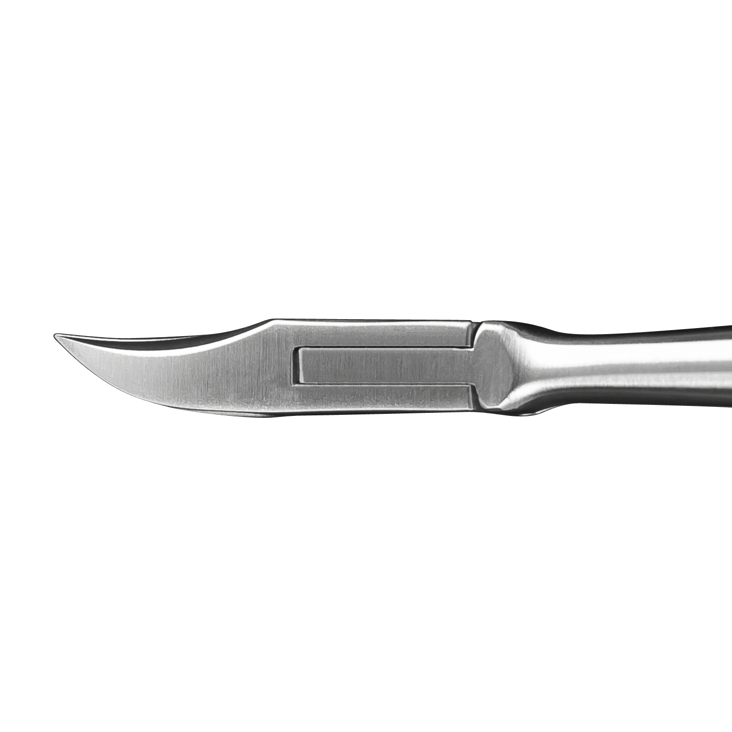 Dieses spezielle Modell zeichnet sich durch eine gewölbte schlanke Schneide 16 mm aus und hat eine Gesamt-Länge 13 cm. Es schneidet auch dicke, verhärtete Nägel mühelos. Als Medizinprodukt ist es aus Edelstahl rostfrei und sterilisierbar. Zudem ist eine Ersatz-Doppelfeder inkl. Schrauben: Art.-Nr. 31019, erhältlich. Hinweis: Eine Positionsveränderung der Federn ist nur nach vorausgegangenem Lösen der Schrauben mit geeignetem Werkzeug möglich.