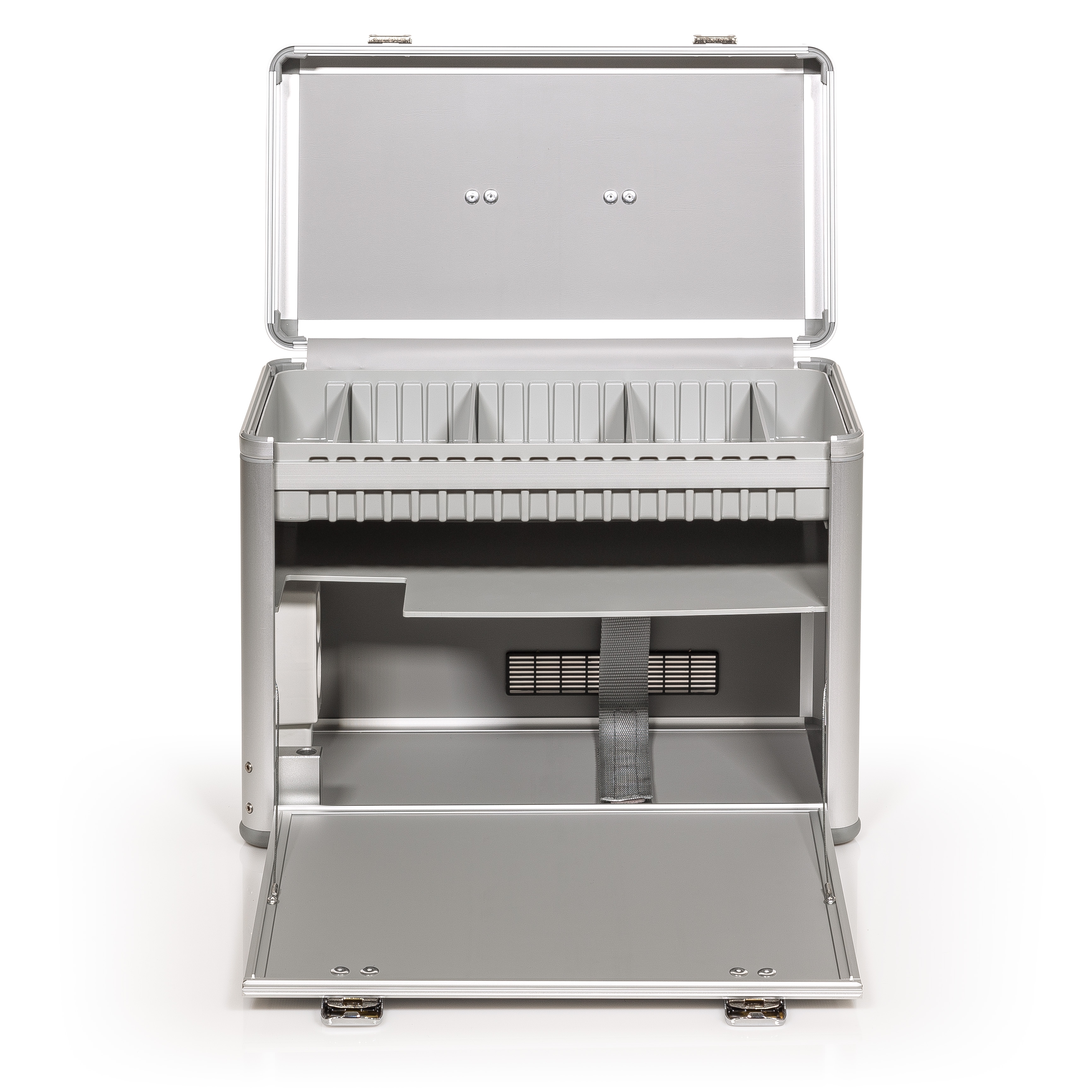 Der BAEHR PODOMOBIL-Koffer II ist der ideale Begleiter für jeden mobilen Fußpfleger. Er bietet ausreichend Platz für Ihre Fußpflegegeräte und gewährleistet durch sein robustes Aluminium-Design einen sicheren Transport. Mit dem integrierten elektrischen Anschluss und zwei Steckdosen können Sie Ihre Geräte einfach und bequem betreiben. Dank des integrierten Lupen-/Leuchtenhalters haben Sie stets optimale Sicht auf Ihre Arbeit.