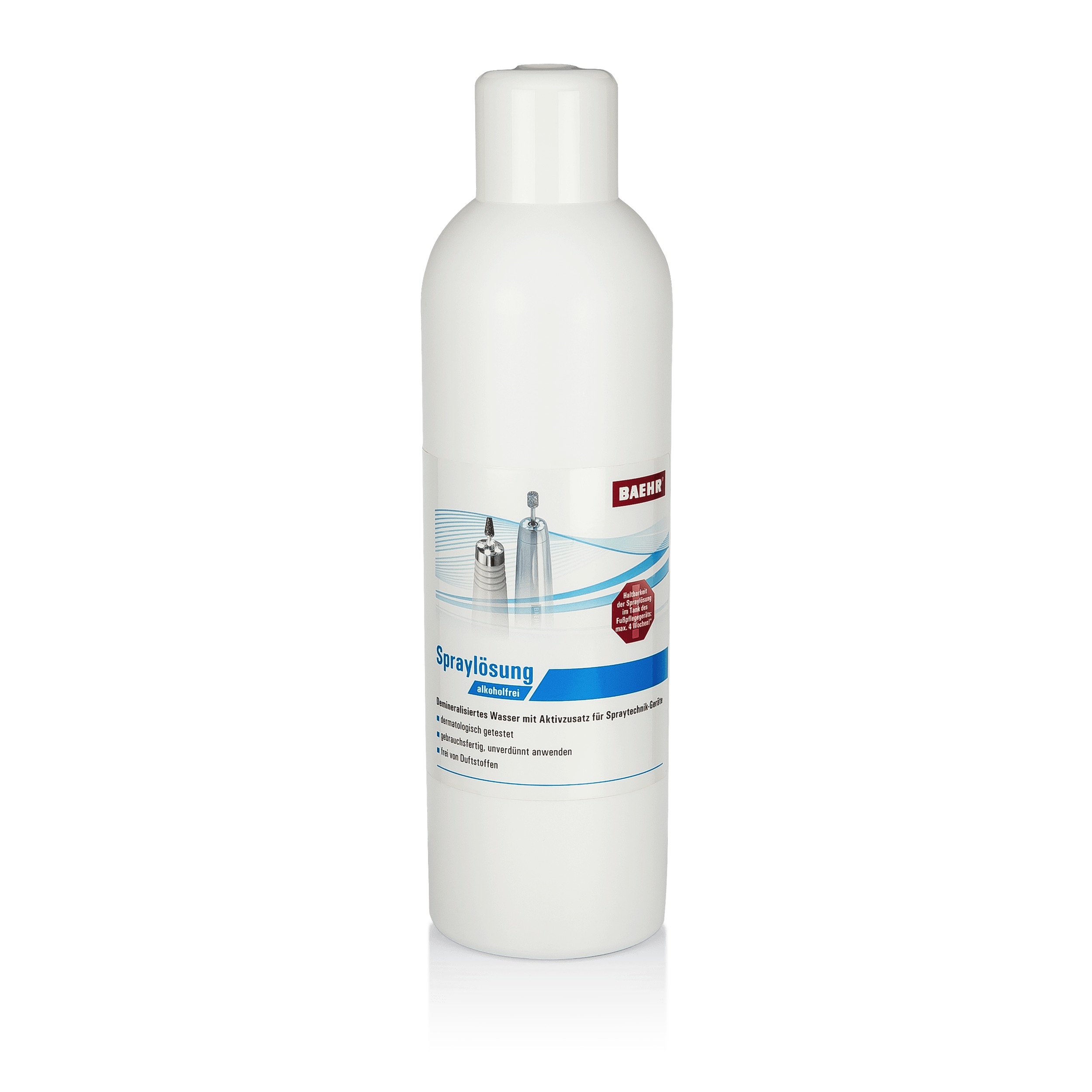 Die BAEHR Spraylösung ist eine speziell entwickelte Lösung für Spraytechnikgeräte. Sie ist alkoholarm und somit perfekt für Anwendungen geeignet, bei denen ein aggressives Lösungsmittel unerwünscht ist.