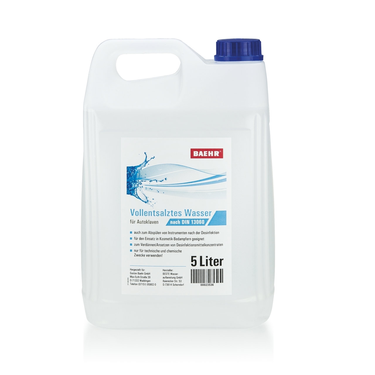Produktinformationen "BAEHR Vollentsalztes Wasser nach DIN 13060 für Autoklaven, 5000 ml"