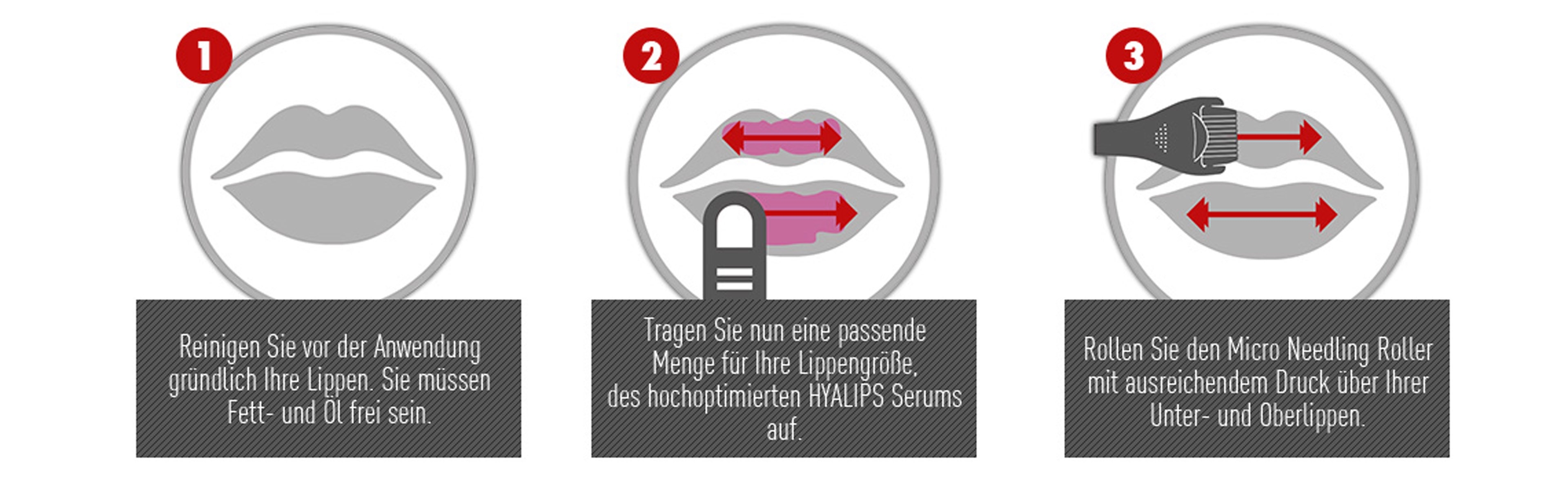 Zusätzlich versorgt hoch- und niedermolekulares Hyaluron die Lippenpartie optimal mit Feuchtigkeit. Koffein regt die Durchblutung sichtbar an und Argireline reduziert kleinere Fältchen. In Kombination mit dem im Set enthaltenen Micro Needling Roller können Sie wunderbar natürlich vollere und prallere Lippen erzielen.