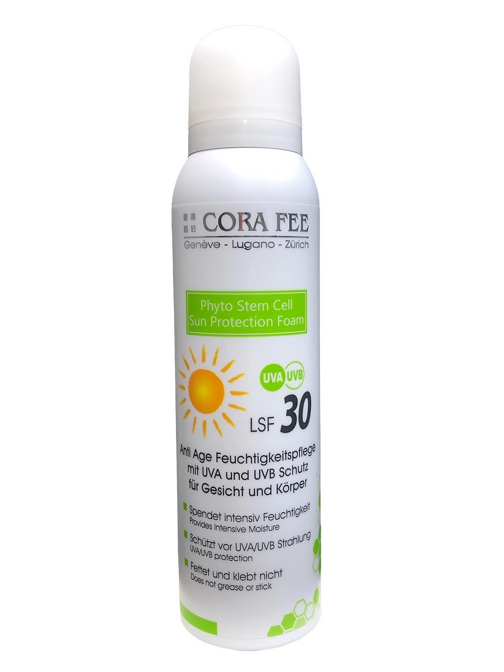 Die Phyto Stammzellen im Cora Fee Sonnenschutz-Schaum stammen von der Apfelsorte Uttwiler Spätlauber, einer alten Schweizer Apfelsorte. Diese Stammzellen haben die Fähigkeit, die Lebensdauer der hauteigenen Stammzellen zu verlängern und somit den Alterungsprozess der Haut zu verzögern. Zusammen mit der hohen Sonnenschutzfaktor von LSF 30 bietet dieser Sonnenschutz-Schaum einen hervorragenden Schutz vor den schädlichen Auswirkungen von UVA- und UVB-Strahlen, die frühzeitige Hautalterung verursachen können.
