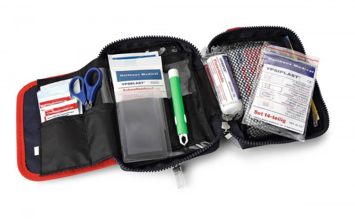 Für Notfälle gerüstet – auch unterwegs. Robuste Nylontasche mit 27teiligem Set für die Erste Hilfe.