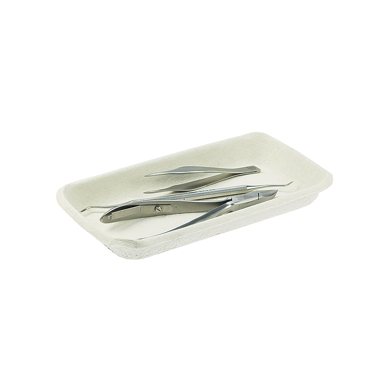 Dank ihrer kompakten Maße von 150 x 65 x 30 mm passt die Mini-Nierenschale perfekt auf jeden Arbeitsplatz und eignet sich ideal zum Ablegen von Kleinutensilien wie Pinzetten, Nagelscheren oder Wattestäbchen. So haben Sie stets alles griffbereit und können effizienter arbeiten.