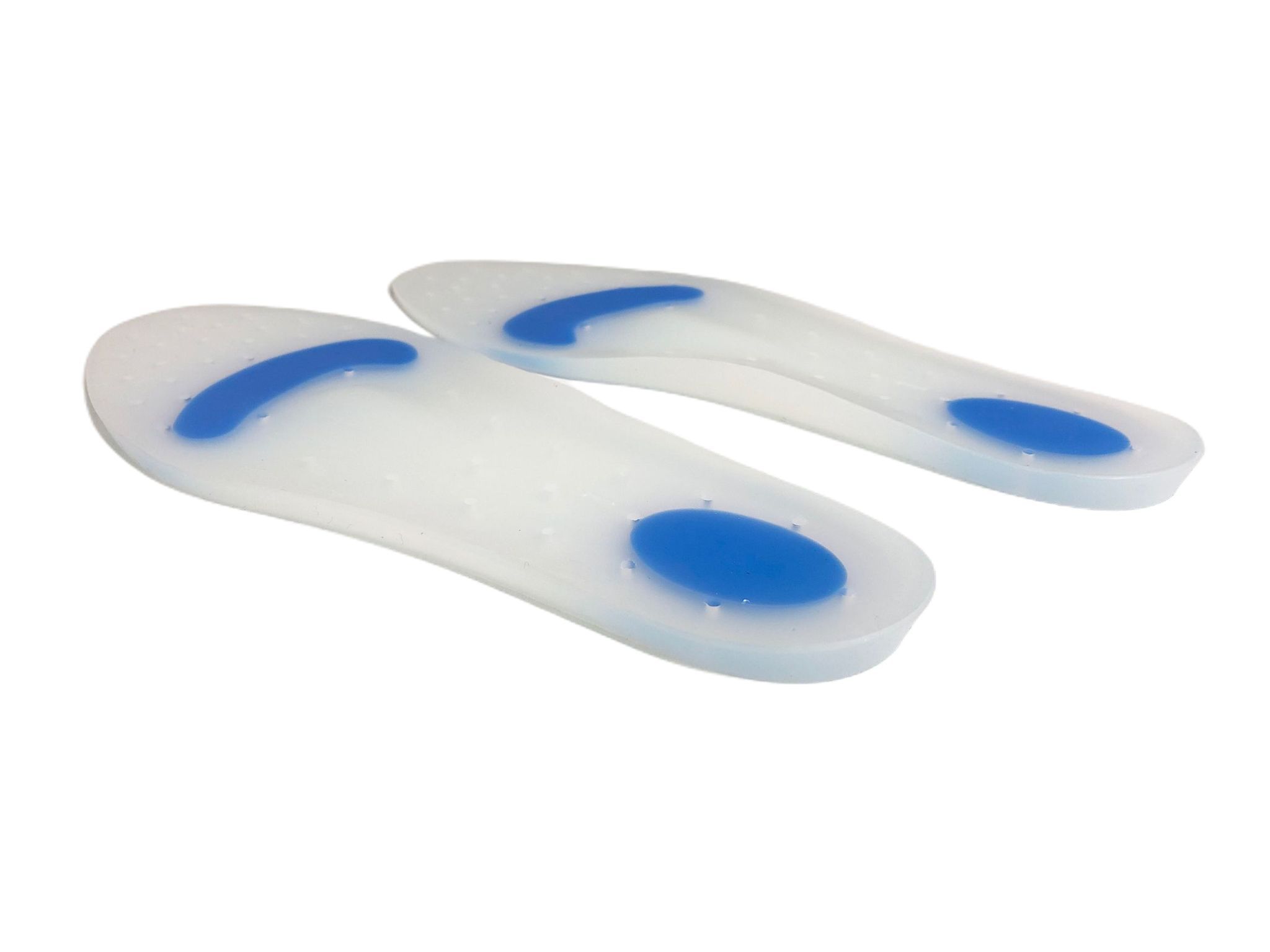 Die FRESCO Gel-Komfort Einlegesohlen sind speziell konzipiert, um Ihnen den bestmöglichen Komfort zu bieten und gleichzeitig Ihre Füße effektiv zu schützen. Hergestellt aus zwei speziellen Silikonen, bieten diese Einlegesohlen eine Kombination aus Festigkeit und Weichheit, die für eine ideale Dämpfung und Unterstützung sorgt.
