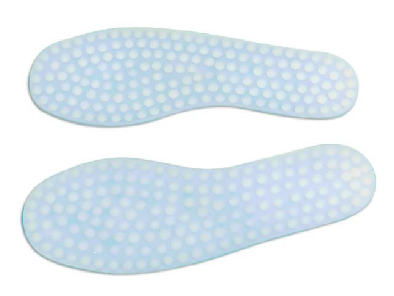 Die FRESCO GEL-Einlegesohle ist eine 2 mm dicke Einlegesohle aus 100 % medizinischem Silikon, die mit über 175 kuppelförmigen Erhebungen ausgestattet ist. Diese sind gleichmäßig verteilt und erzeugen beim Gehen einen Massageeffekt. Die Einlegesohle erleichtert den Druck auf die unteren Gelenke und lindert Schmerzen an Füßen, Mittelfußbereich, Fersen, Hüften und Knien. Sie ist anatomisch geformt und für den linken und rechten Fuß geeignet.