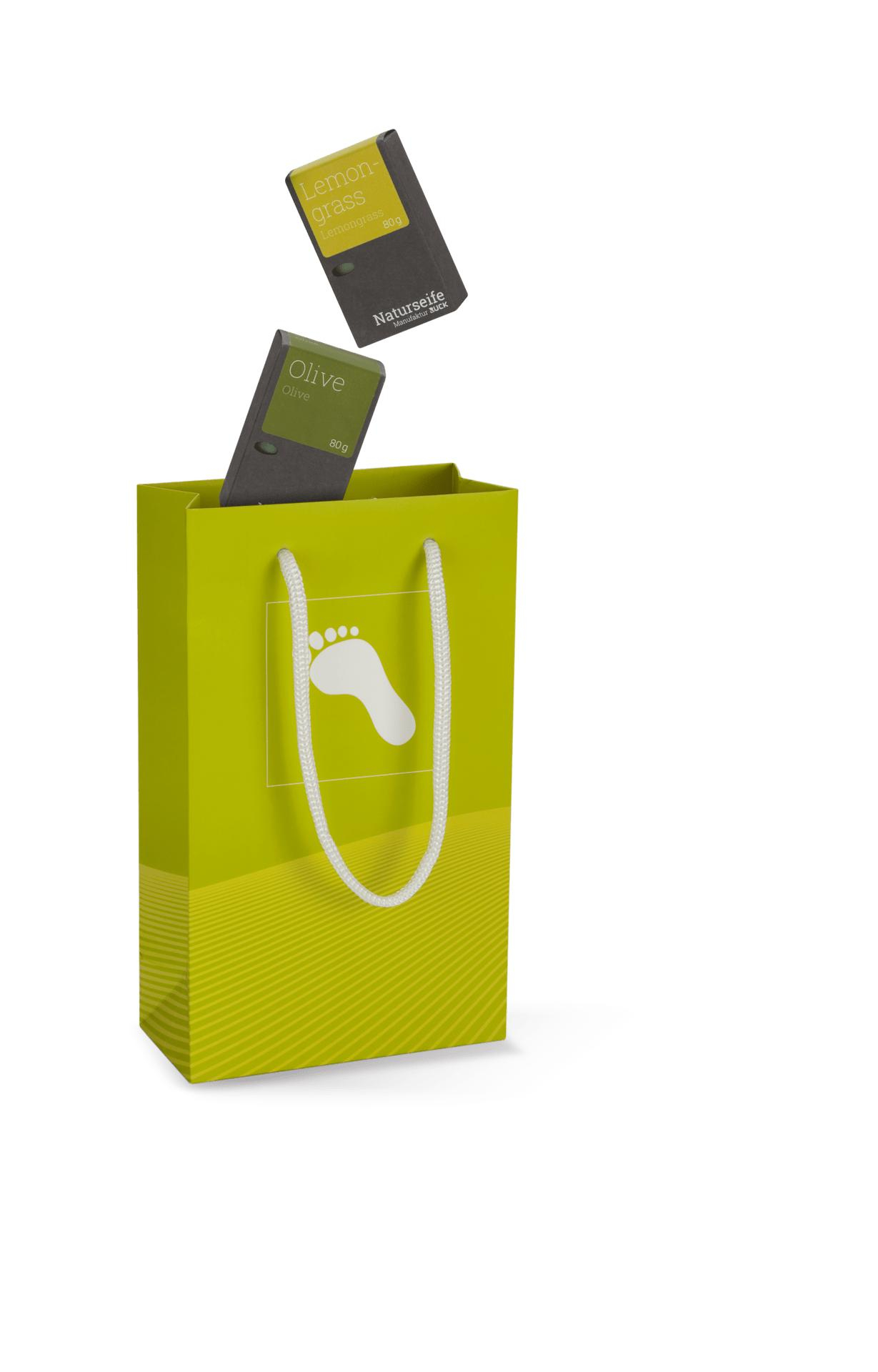 Produktinformationen "Geschenktasche in grün mit Fuß"