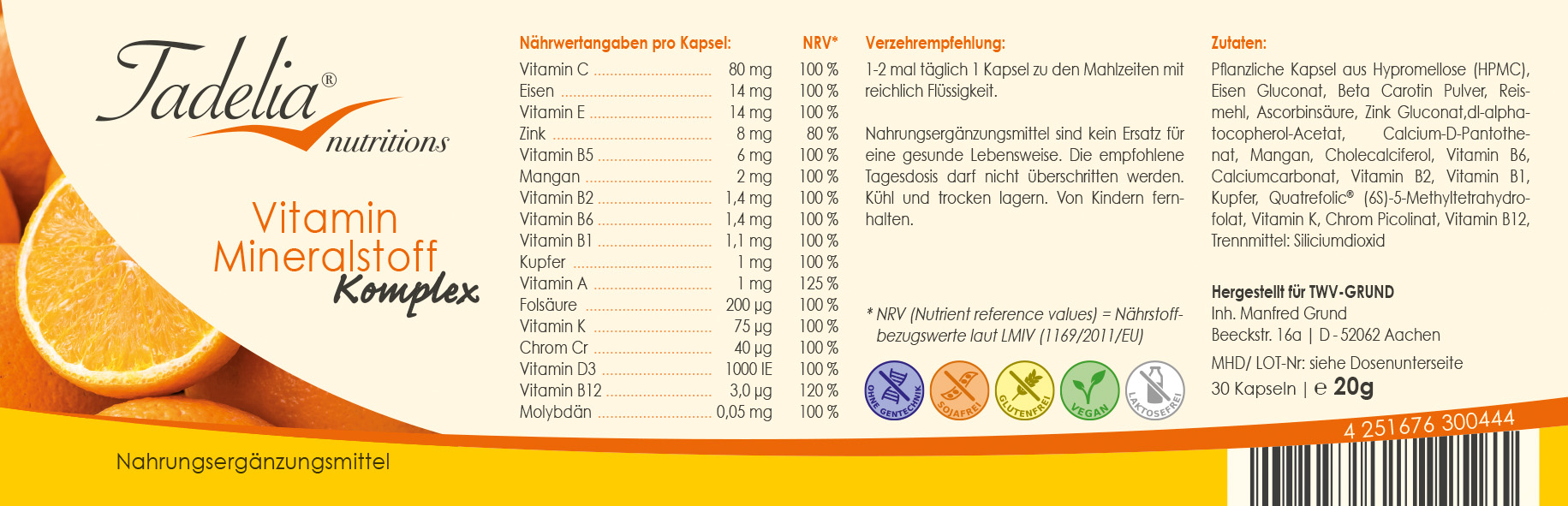Tadelia® Vitamin Mineralstoff Komplex bieten eine optimale Versorgung mit wichtigen Nährstoffen.