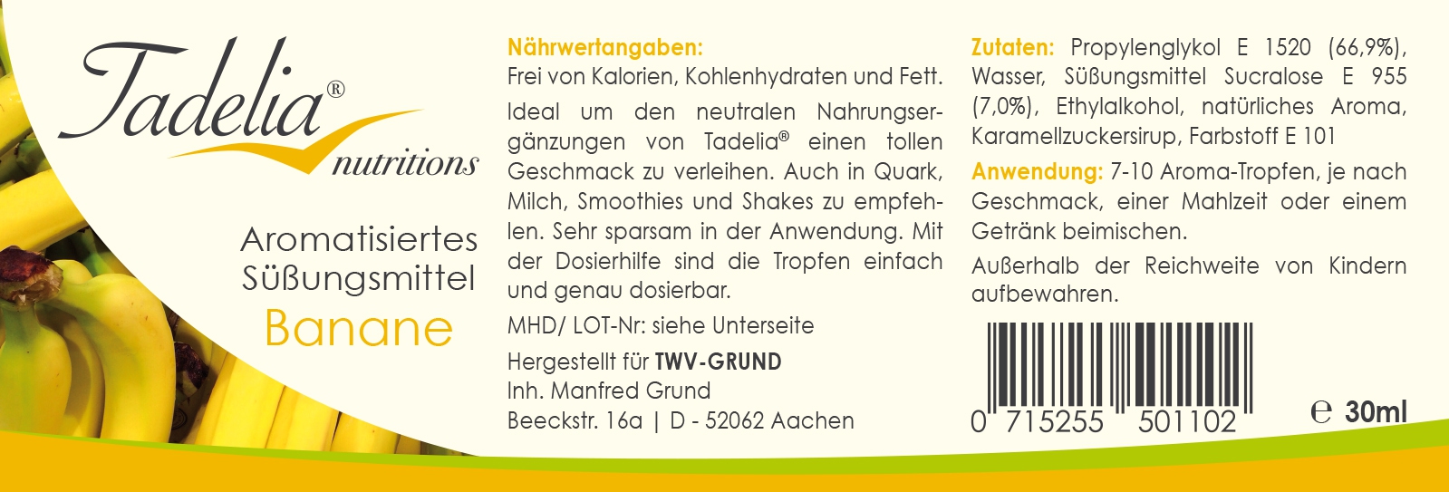 1 Flasche Aromatropfen in 4 Geschmacksrichtungen | Vanille, Banane, Erdbeere, Schoko | entsprechende Auswahl siehe oben |