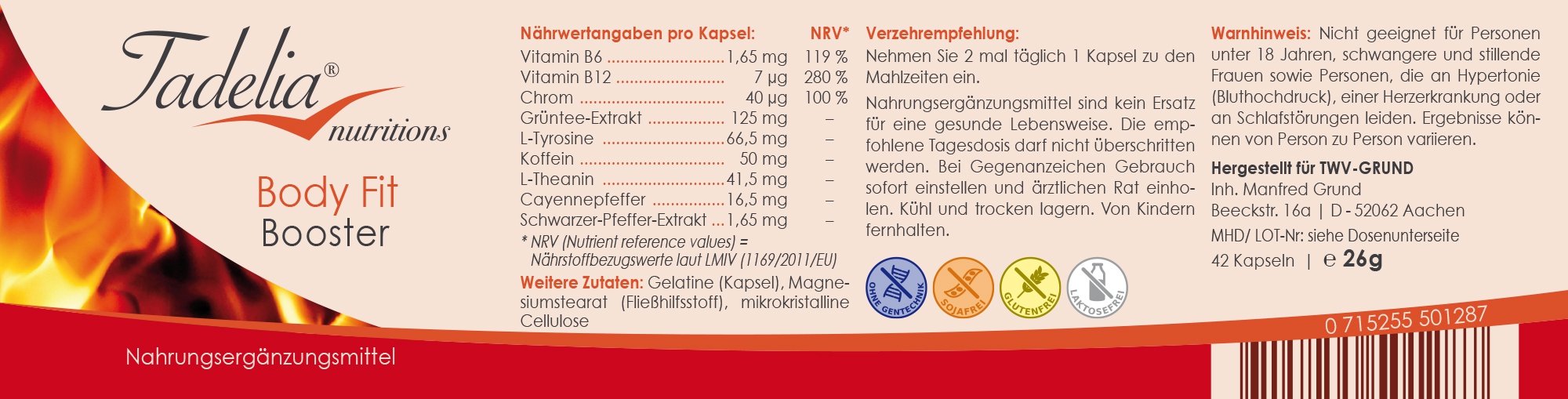 Inhaltsstoffe und Nährwertangaben: