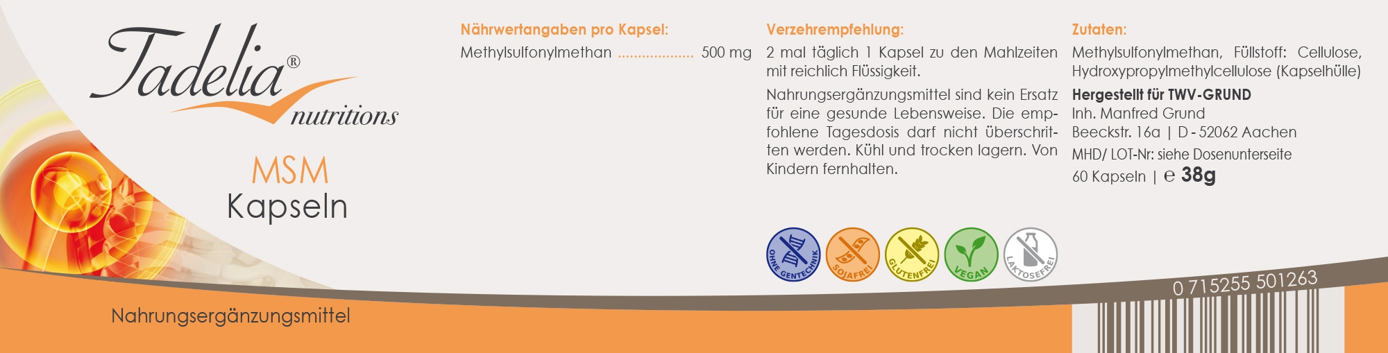 Tadelia MSM kapseln können im Rahmen der Tadelia hCG Stoffwechseldiät eingenommen werden.