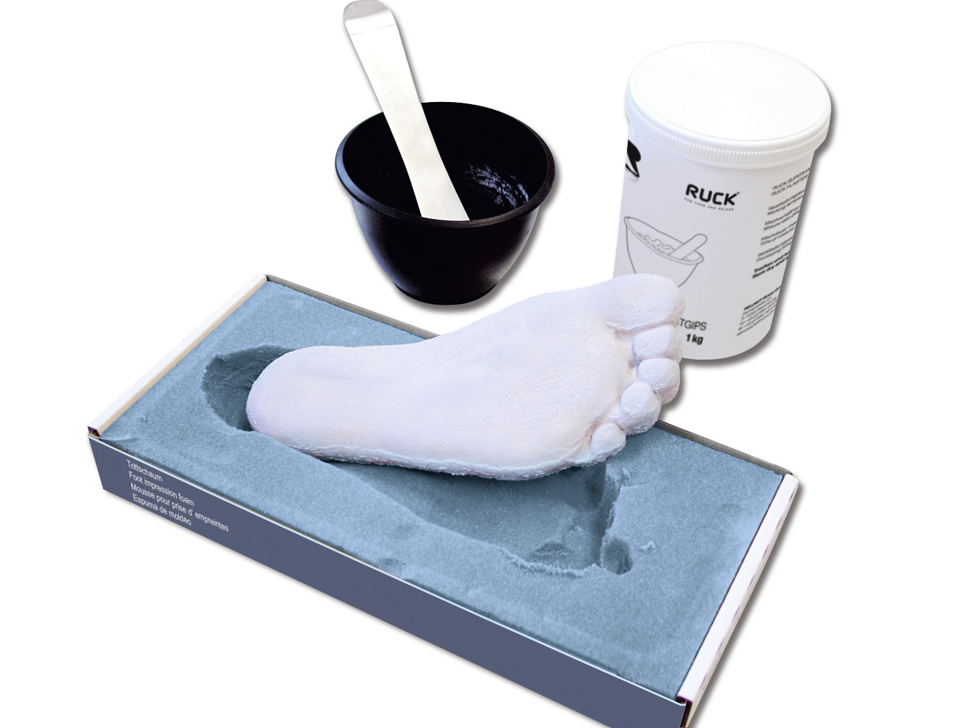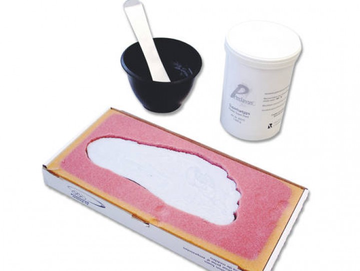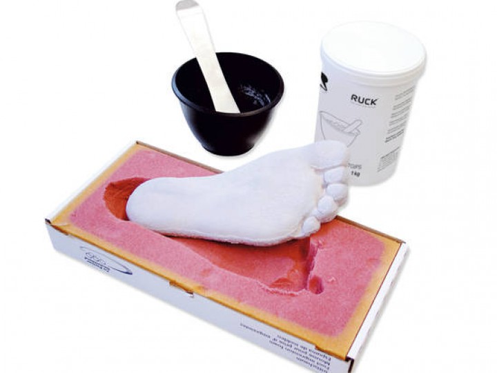 Der Trittschaum Standard plus bietet eine einfache und sichere 3-dimensionale Darstellung von Fußsohle und Fußgewölbe. Durch Ausgießen mit Gips oder Kunstharz erhalten Sie eine exakte Reproduktion des Patientenfußes, was ideal für die Vorbereitung von Orthosen, Druckentlastungen etc. ist.