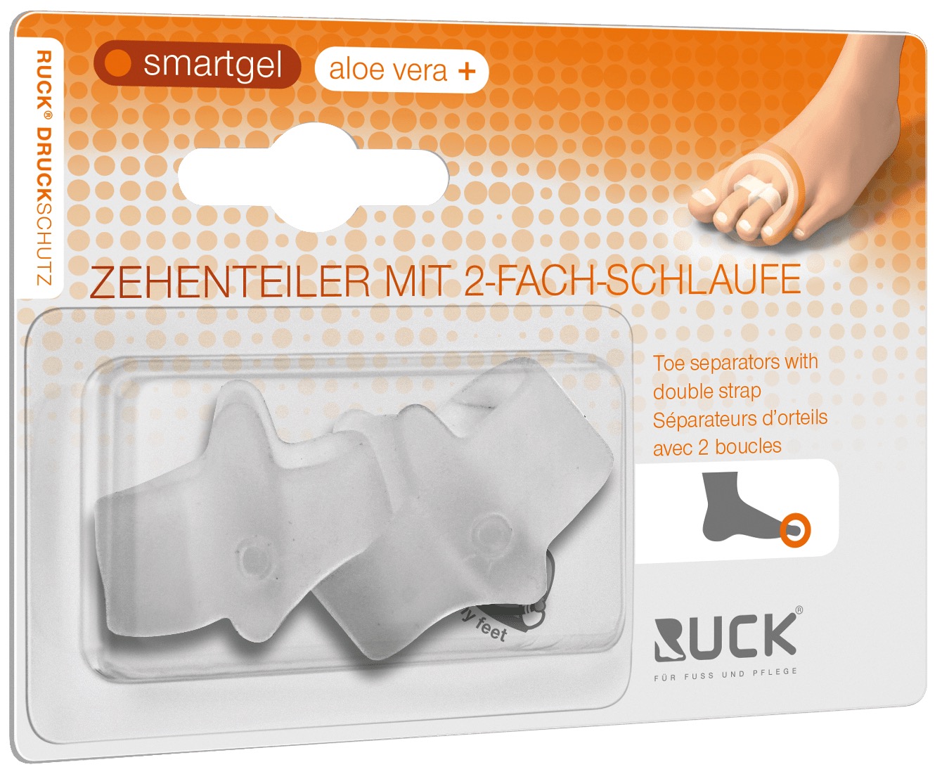 Der RUCK DRUCKSCHUTZ Zehenteiler mit 2-fach Schlaufe bietet wirkungsvolle Entlastung bei Hammer- und Krallenzehen. Ausgestattet mit der innovativen Smartgel Technologie, versorgt dieser Zehenteiler die Haut kontinuierlich mit mineralischen Ölen und natürlichen Additiven wie Sheabutter, um sie mit Feuchtigkeit zu versorgen, weich und geschmeidig zu halten. Hypoallergen und für alle Hauttypen geeignet, ist dieser Zehenteiler die ideale Lösung für Personen mit Fehlstellungen der Zehen.