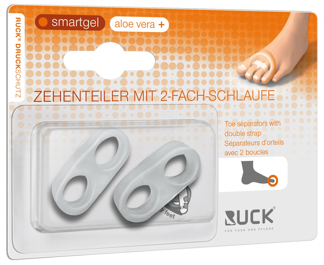 Der RUCK DRUCKSCHUTZ Zehenteiler mit 2-fach Schlaufe bietet wirkungsvolle Entlastung bei Hammer- und Krallenzehen. Ausgestattet mit der innovativen Smartgel Technologie, versorgt dieser Zehenteiler die Haut kontinuierlich mit mineralischen Ölen und natürlichen Additiven wie Sheabutter, um sie mit Feuchtigkeit zu versorgen, weich und geschmeidig zu halten. Hypoallergen und für alle Hauttypen geeignet, ist dieser Zehenteiler die ideale Lösung für Personen mit Fehlstellungen der Zehen.