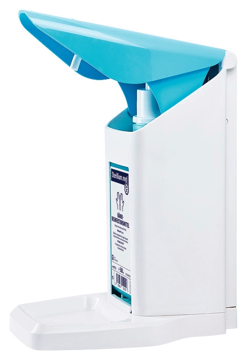 Der Desinfektionsmittel-Wandspender für den Einsatz mit Flaschen zum Einmalgebrauch.