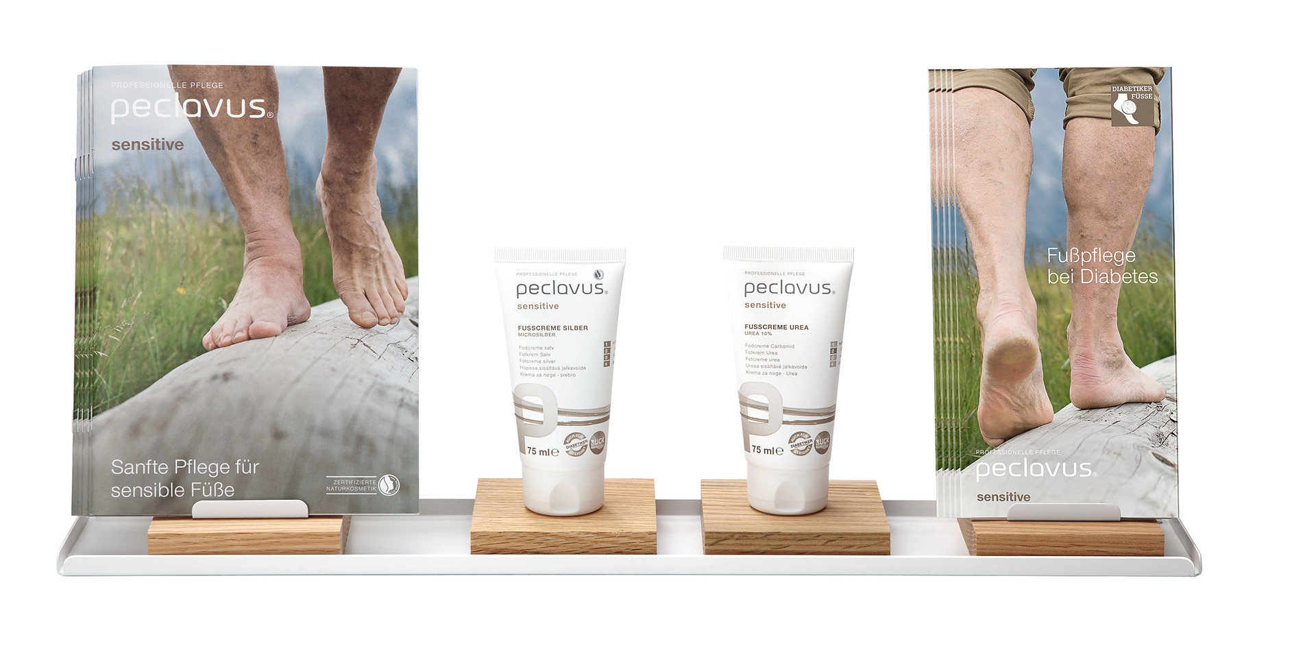 Ein Hauch Natürlichkeit für Ihre Räumlichkeiten? Dann haben wir etwas Besonderes für Sie. Edles Eichenholz, massiv und geölt ist das Trägerelement, dazu das Werbekarten-Set mit allen Key-Visuals der peclavus® Serien. Das Komplett-Set enthält 6 x das Holzpodest Universal, 1 x das Werbekarten-Set, ein Alu-Tray für die Holzpodeste und einen passenden Broschürenhalter in weiß-matt. Damit sind Sie bestens gerüstet für eine individuell gestaltbare und ansprechende Präsentation der Produkte und Werbemittel, bei Wunsch alles wohlgeordnet auf dem Tray.