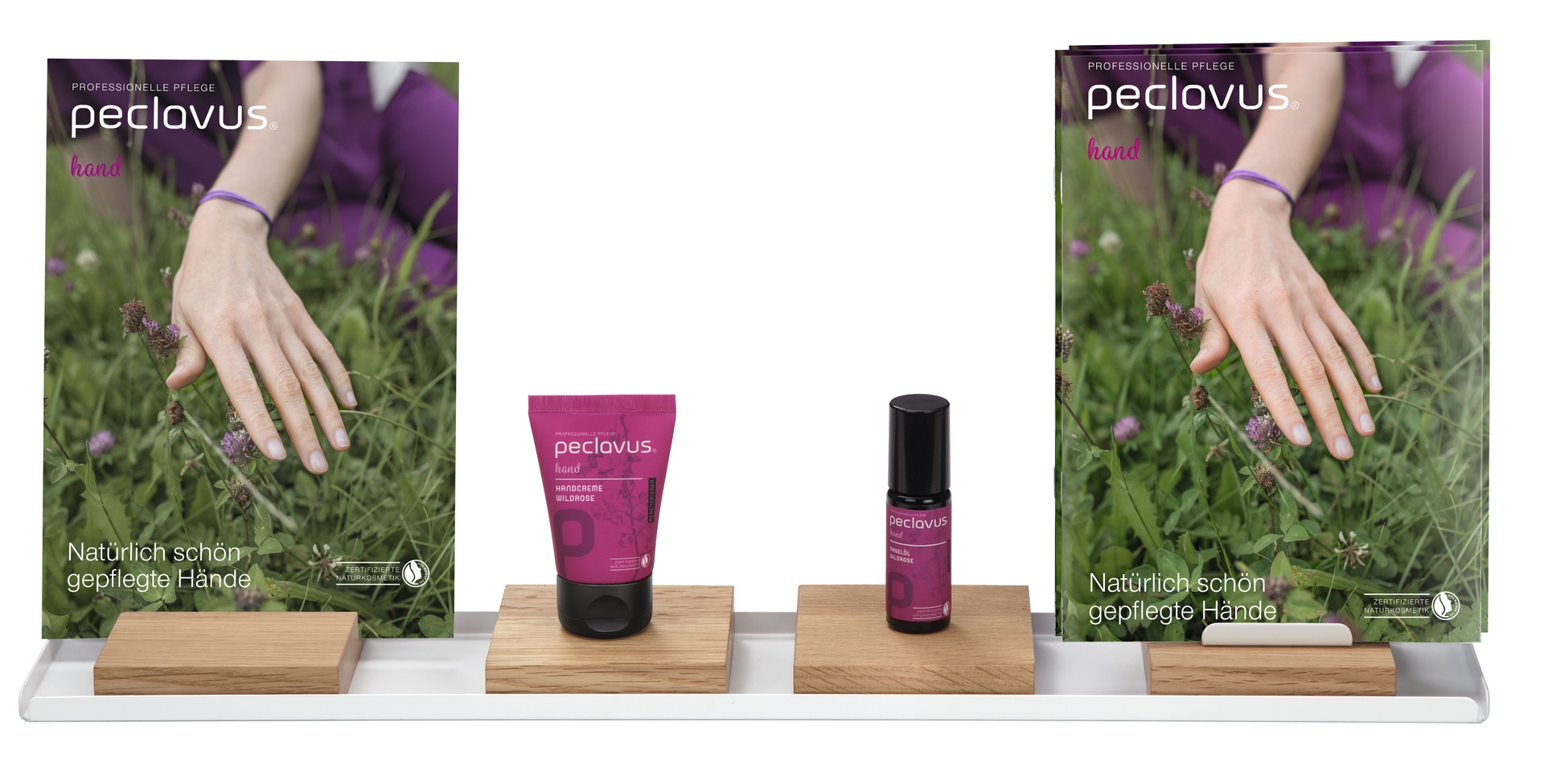 Das Set besteht aus 11 stabilen Werbekarten mit den Key-Visuals (Hauptmotiven) aller peclavus® Serien und den wellness Stimmungswelten “Ruhe finden“, “Kraft tanken“ und “Geborgen fühlen“. Zum Einstecken in das peclavus® Holzpodest Universal. Eine stimmungsvolle Anregung für Kundengespräche und eine schöne Dekoration. Kombinationstipp: Ein Podest mit der Werbekarte “Ruhe finden“, ein Podest daneben mit einem Tester der peclavus® wellness Körperlotion Wildrose. Alternativ: Ein Podest mit der Werbekarte von peclavus® basic, ein Podest daneben mit einem Tester der peclavus® basic Fusscreme Granatapfel.