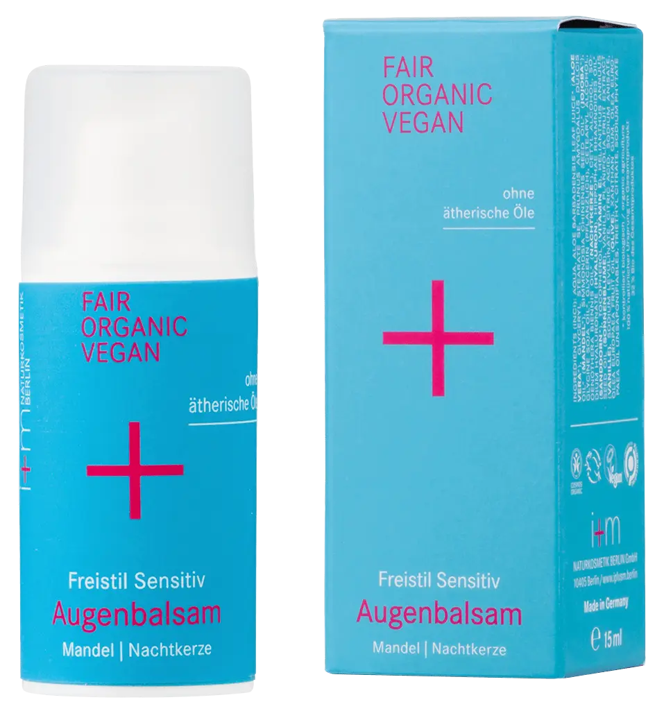 Der i+m Freistil Sensitive Augenbalsam bietet sanfte und intensive Pflege speziell für empfindliche und trockene Haut. Angereichert mit feuchtigkeitsspendendem Hyaluron sowie Mandel- und Nachtkerzenöl, verleiht er der Haut Elastizität und regeneriert sanft.