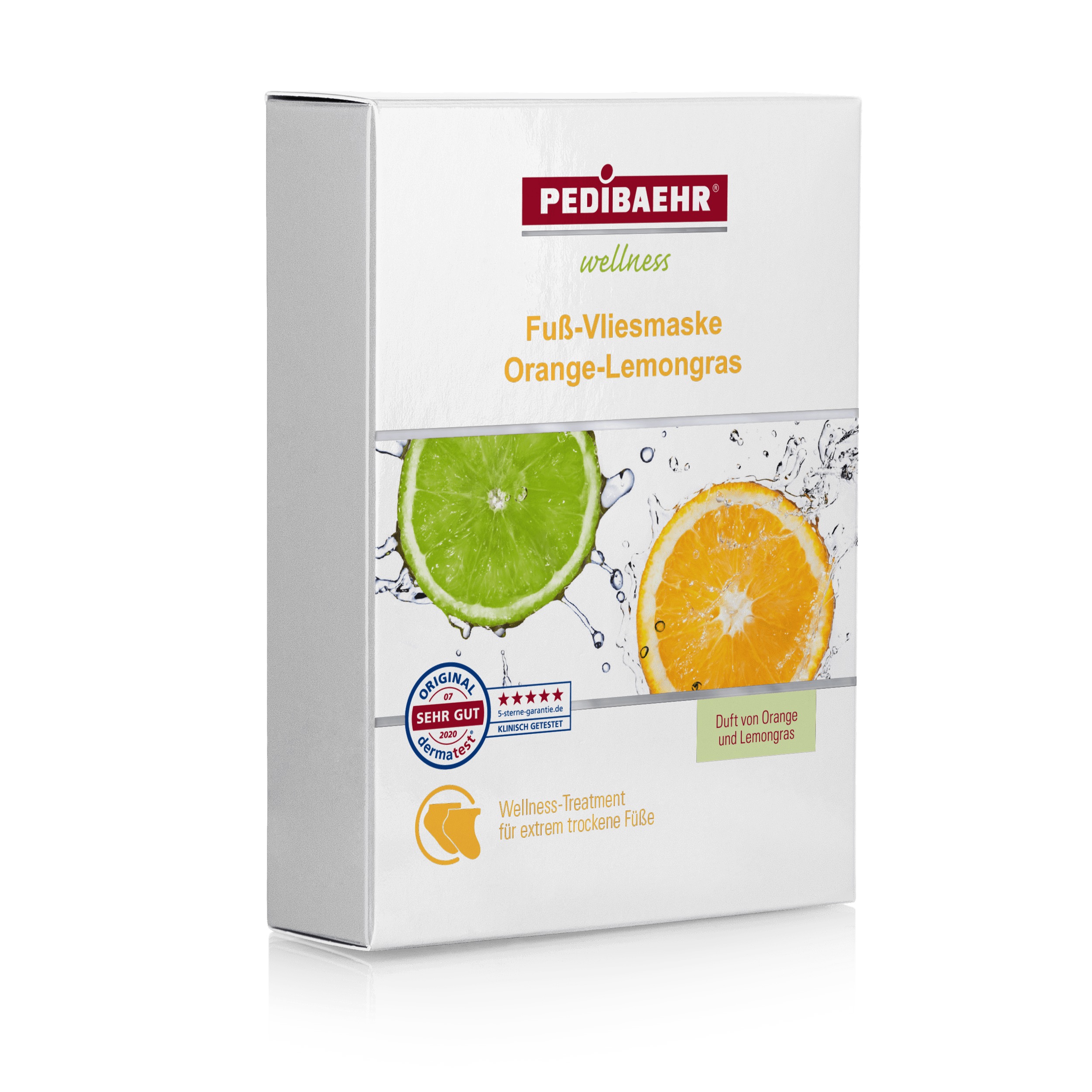 Produktinformationen "PEDIBAEHR Fuss-Vliesmaske Orange-Lemongrass | 5 Paar"